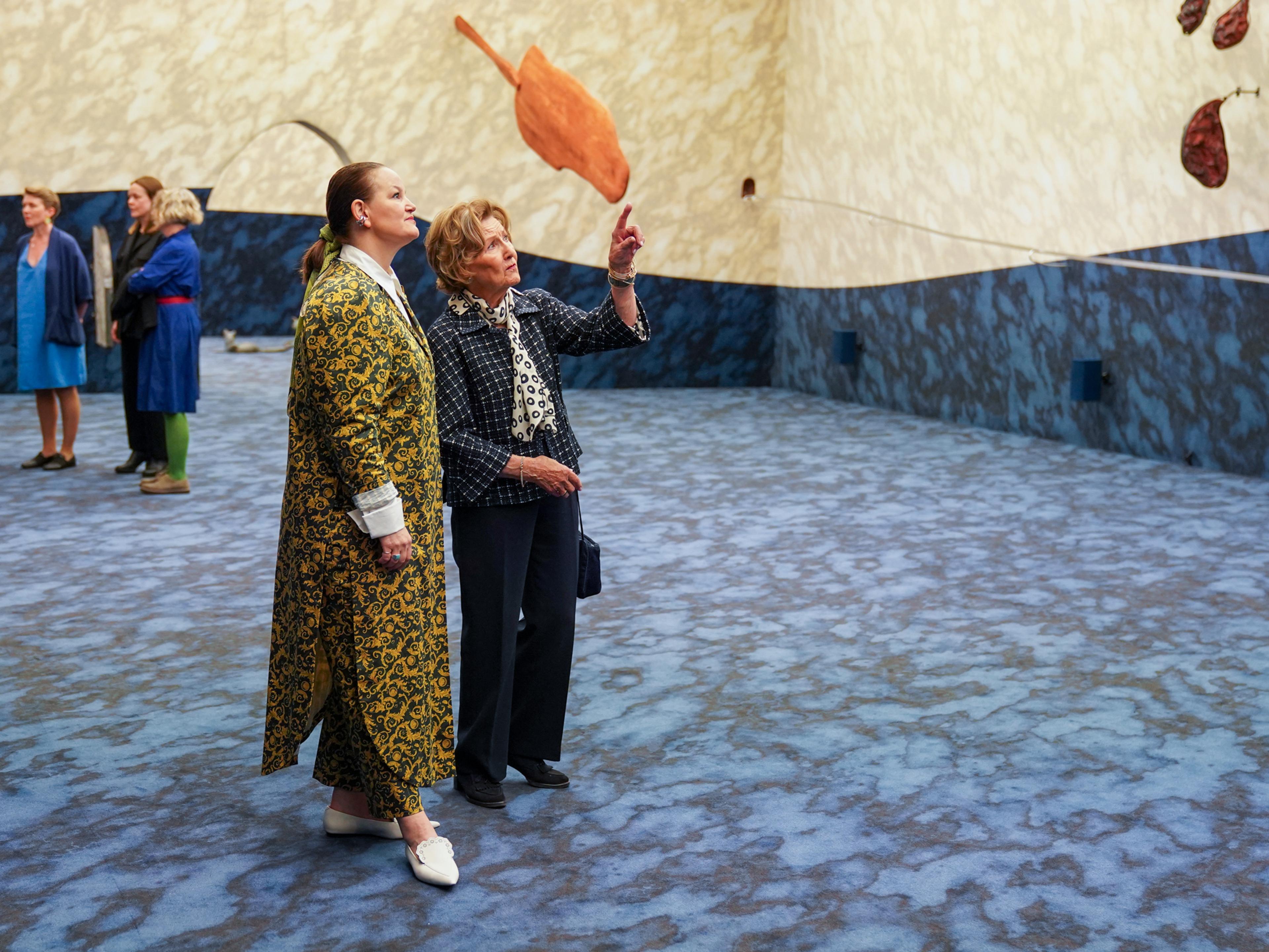 Tori Wrånes er en tverrfaglig kunstner som utfolder seg i performance, skulpturer, film eller installasjoner. Årets festspillkunstner er født i Kristiansand, men er nå basert i Oslo. I dag viste hun selv Dronningen rundt i utstillingen og fortalte om sine arbeider.
