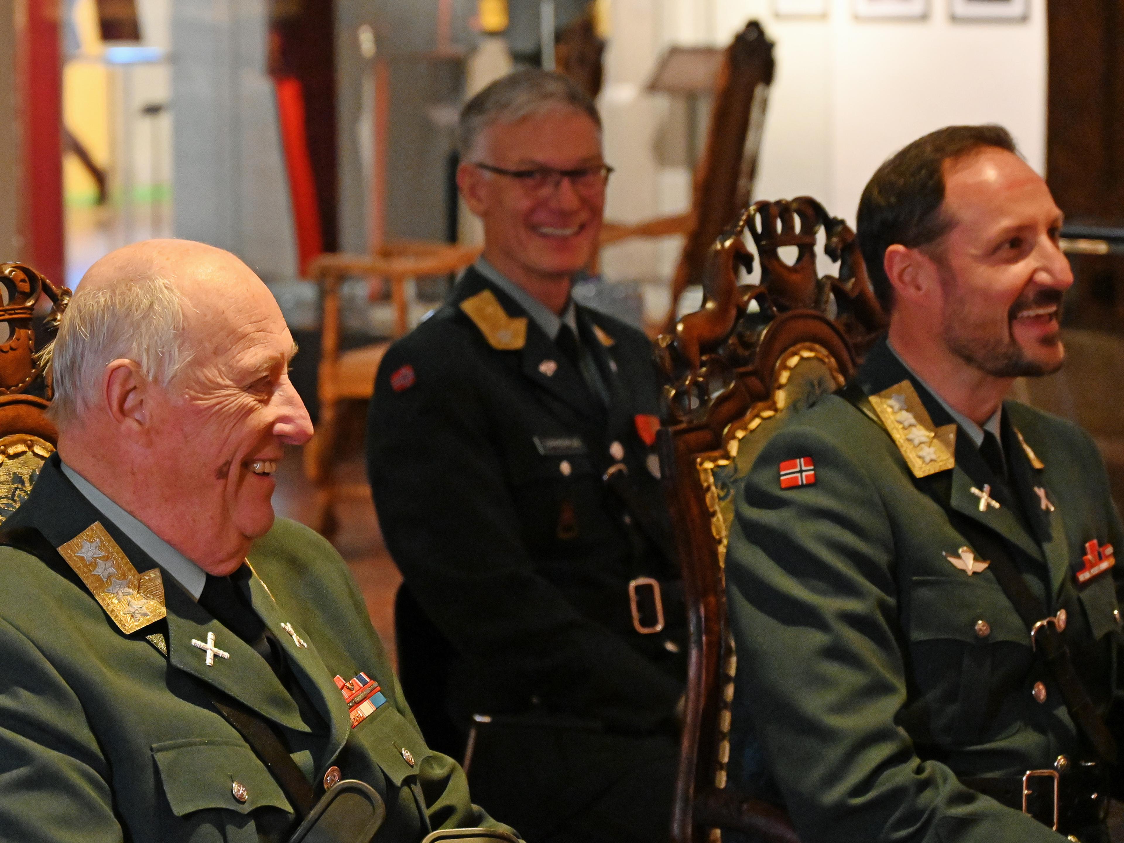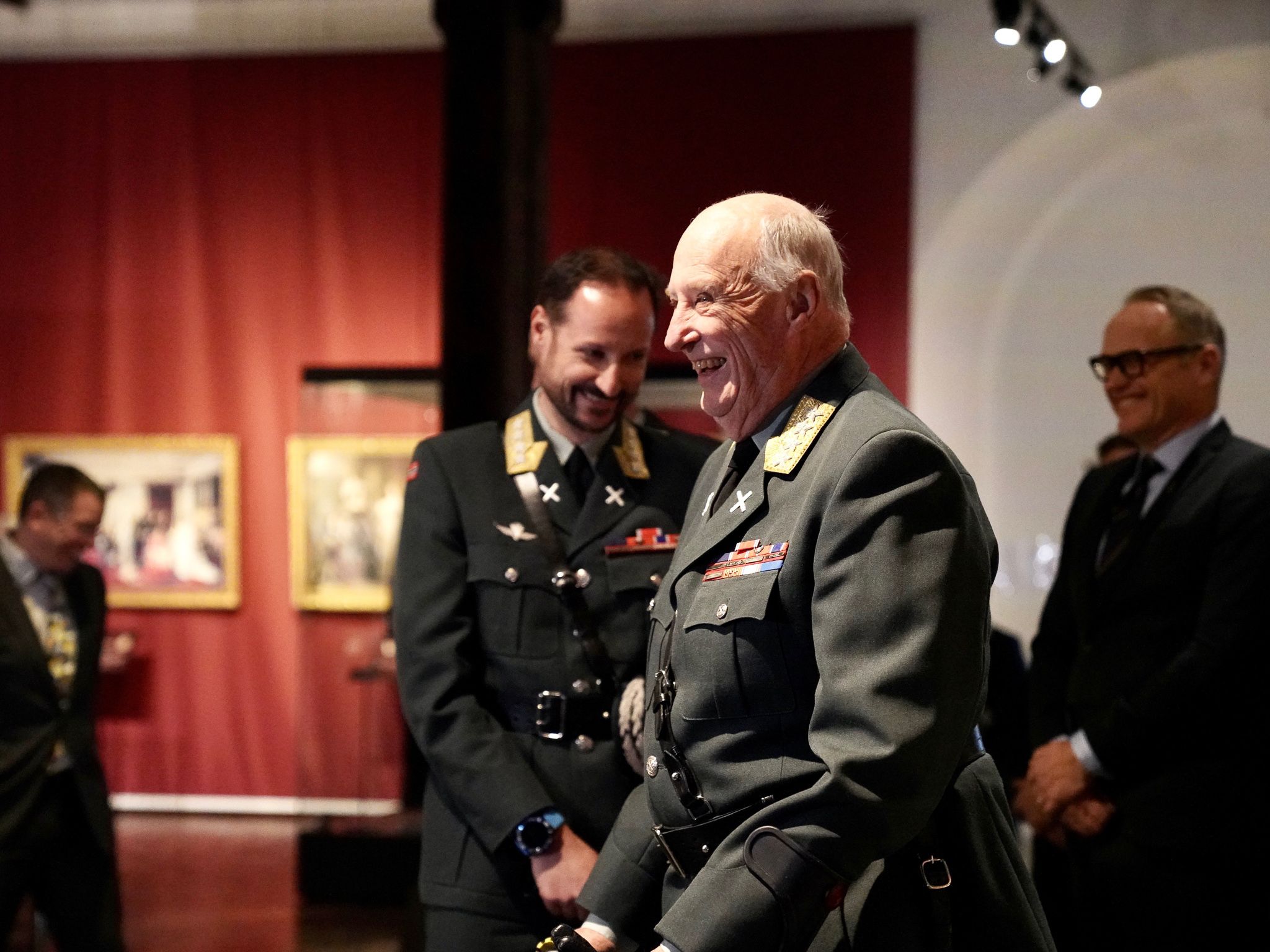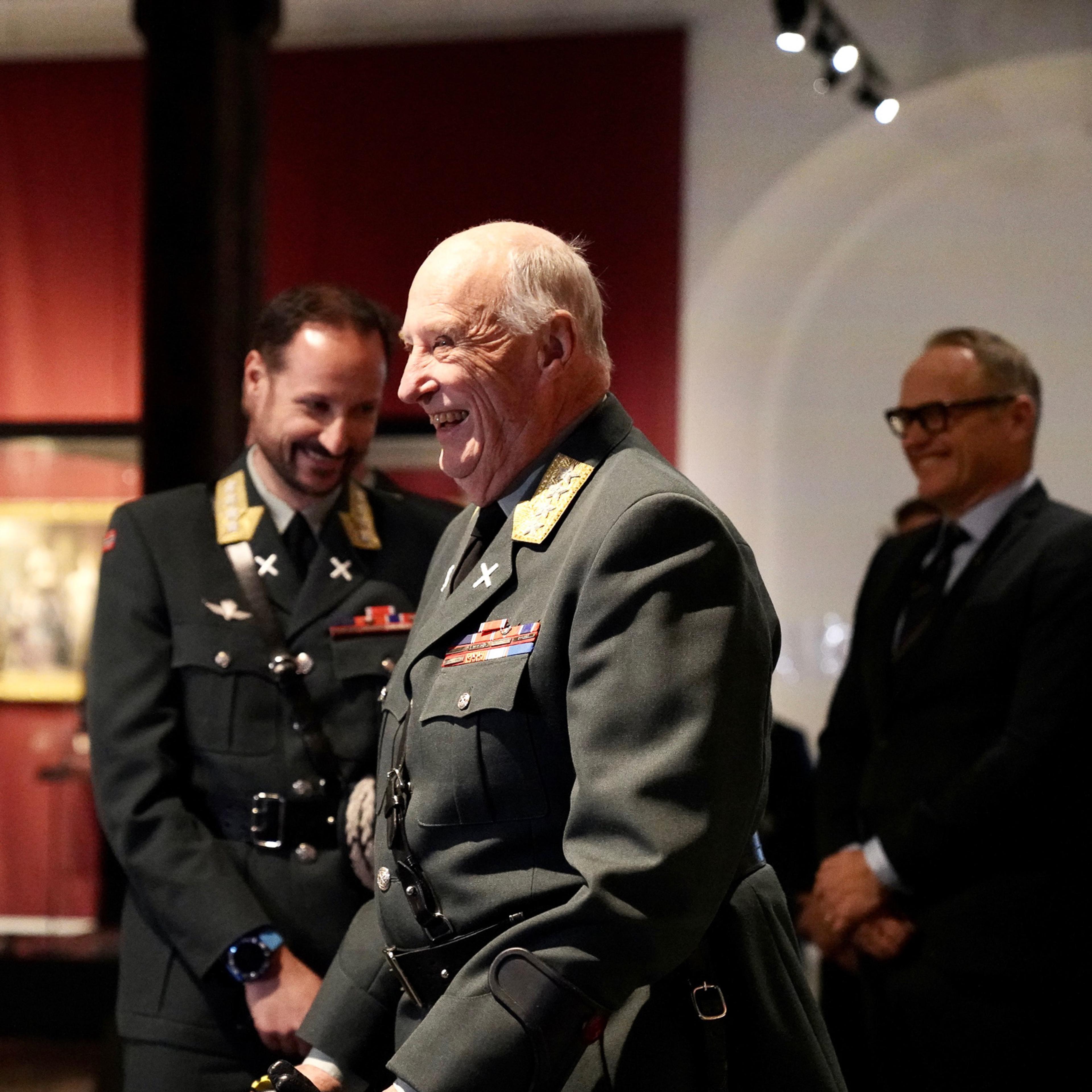 Kong Harald og Kronprins Haakon ble ønsket velkommen til Forsvarsmuseet av forsvarssjef Eirik Kristoffersen, brigader og kommandant Arne Opperud ved Akershus festning og museumsdirektør Erling Kjærnes. Førsteamanuensis Knut Arstad orienterte om utstillingen.
