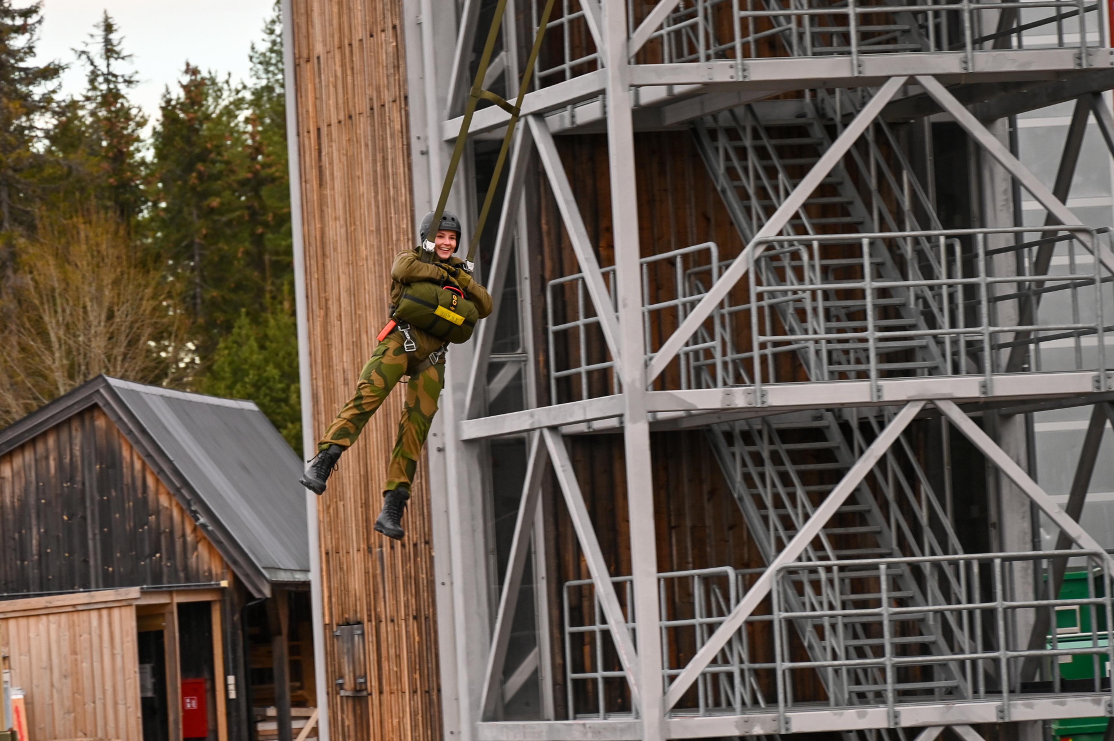 Deretter fekk Prinsessa i full uniform ei omvising i leiren med demonstrasjonar av jegersoldatar i full utrusting og av køyretøyparken. Prinsessa fekk òg simulere eit fallskjermhopp frå eit såkalla hoppetårn.