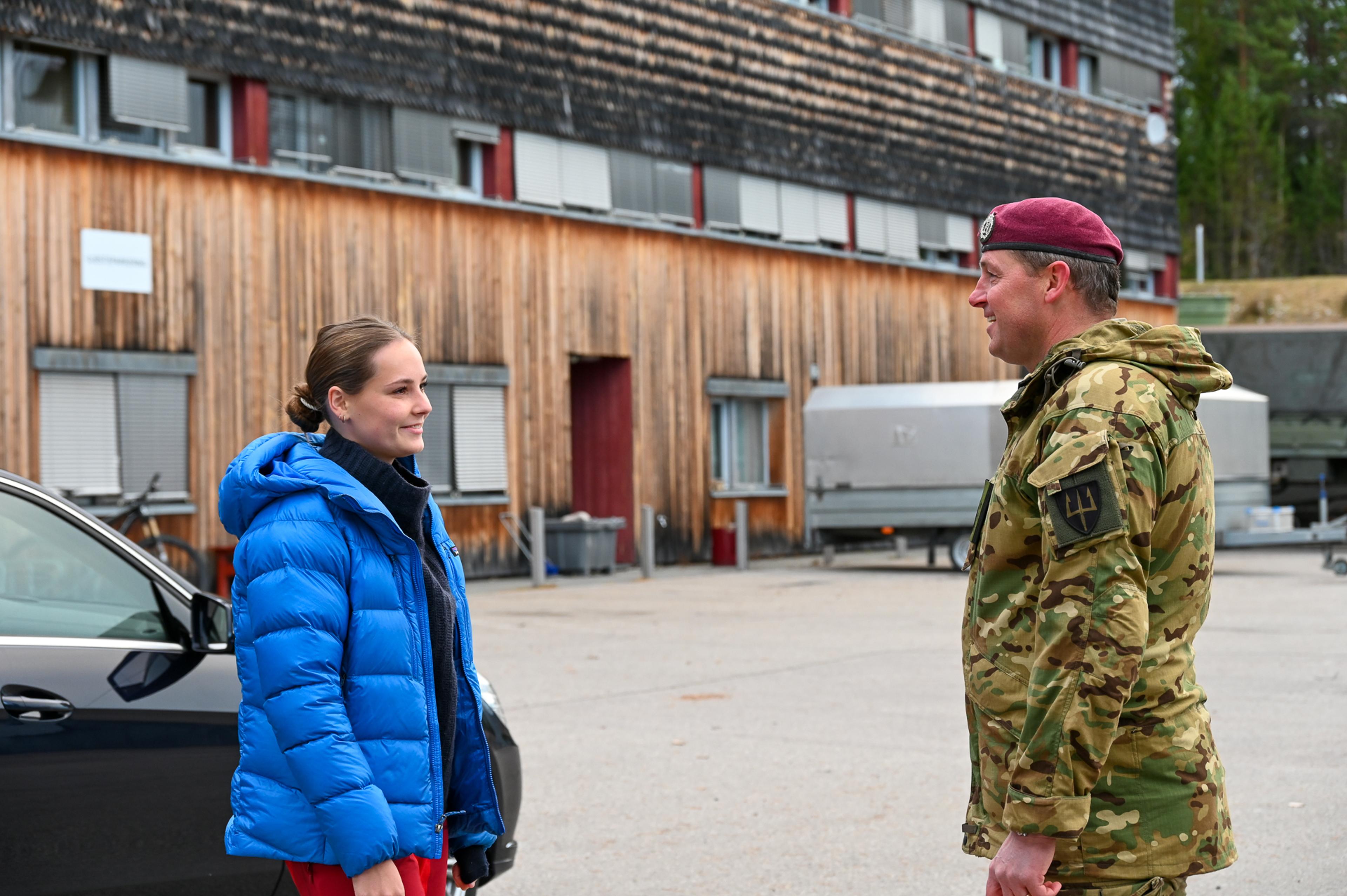 Prinsessa vart motteken av sjefen for Forsvarets spesialkommando, oberst Lars W. Lilleby, da ho kom til Rena leir i Østerdalen. Der har spesialstyrkane basen sin med eige øvings- og treningsområde.