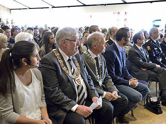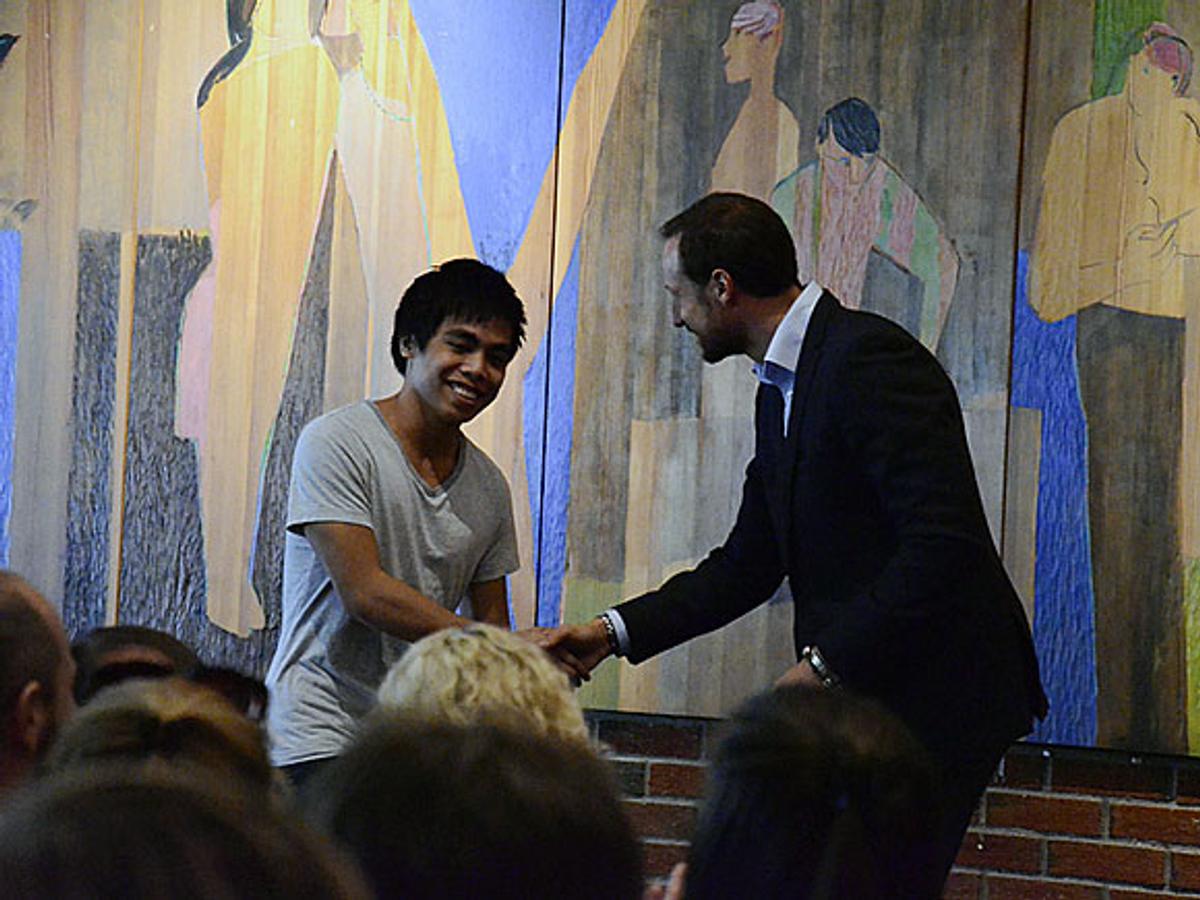 Dagens besøk til Vestfold startet på Re Videregående skole utenfor Tønsberg. Her skulle 250 elever vie en halv skoledag til å diskutere verdighet. Hva betyr dette begrepet egentlig? Hva betyr det for hver og en av oss? Kronprins Haakon ledet diskusjonen i et av klasserommene, før alle elevene samlet seg for å dele sine egne historier om gitt og mottatt verdighet i plenum.