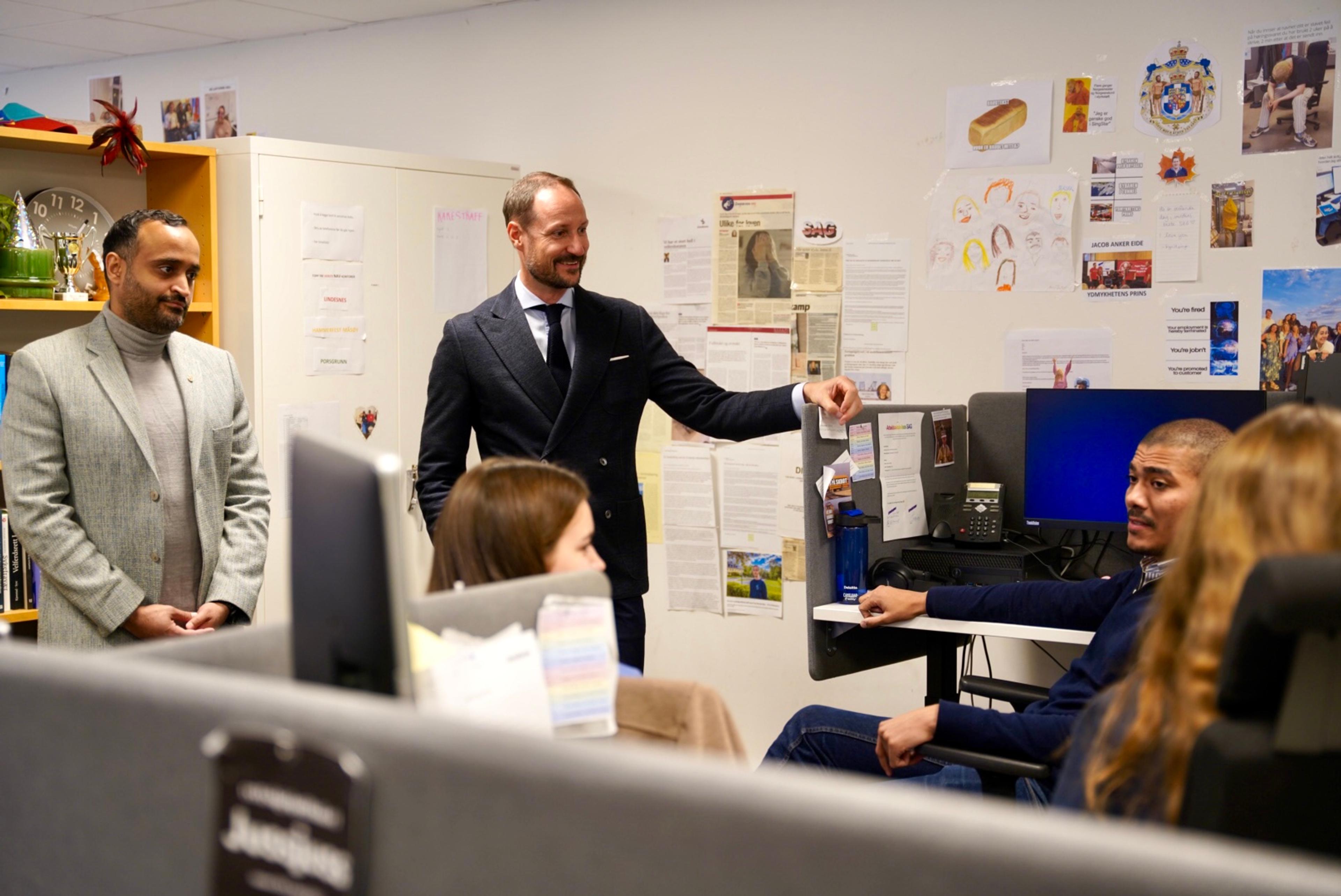Etter orienteringene fikk Kronprinsen en omvisning i Jussbuss sine lokaler. Her møtte han mange av saksbehandlerne, som fortalte om arbeidet som daglig gjøres i de ulike faggruppene de er del av.