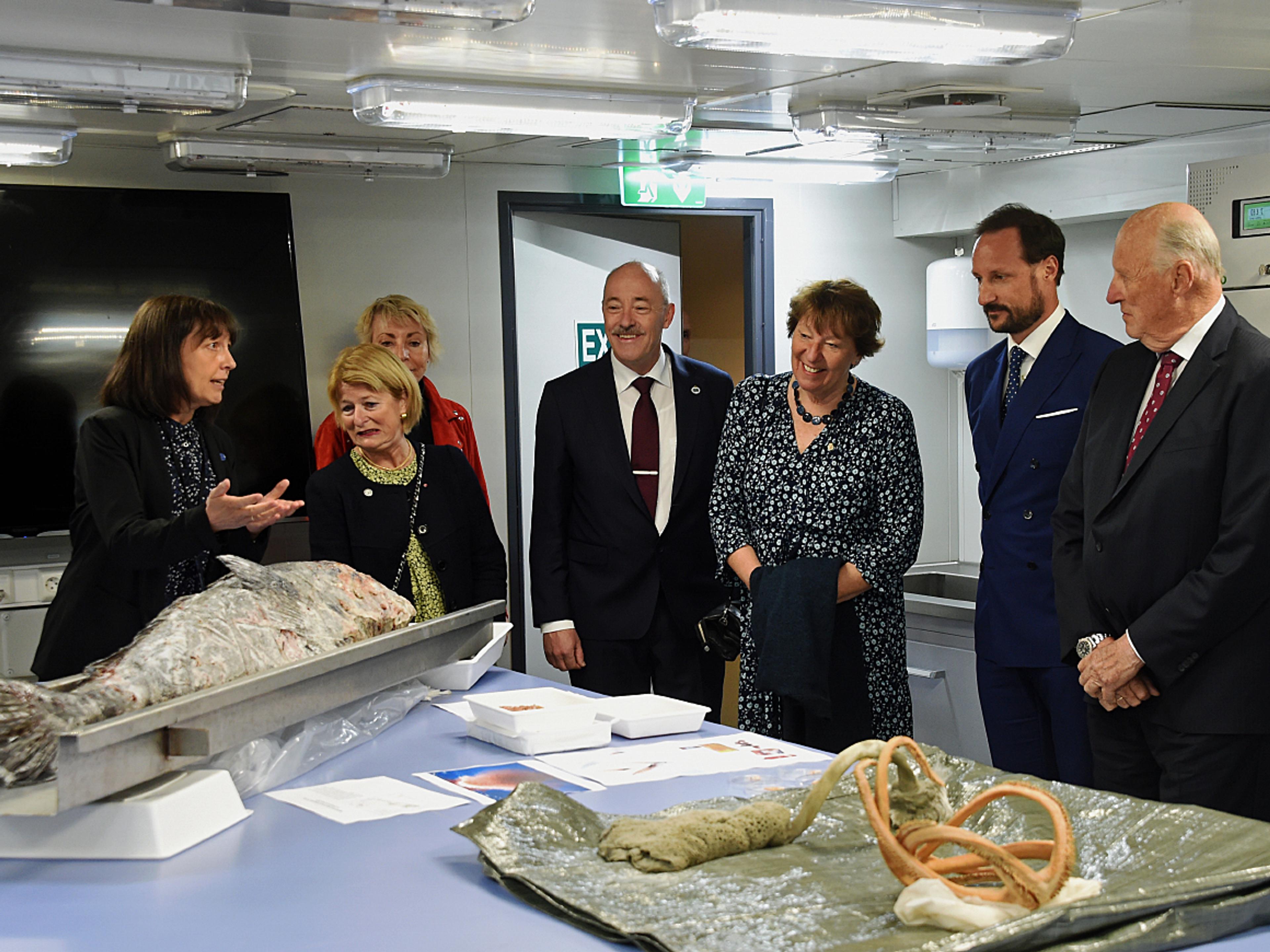 De kongelige fikk også se skipets laboratorier og informasjon om pågående forskning og kommende tokt. En orientering om selve skipet tok kaptein Karl-Robert Røttingen seg av.