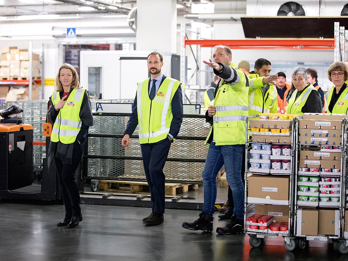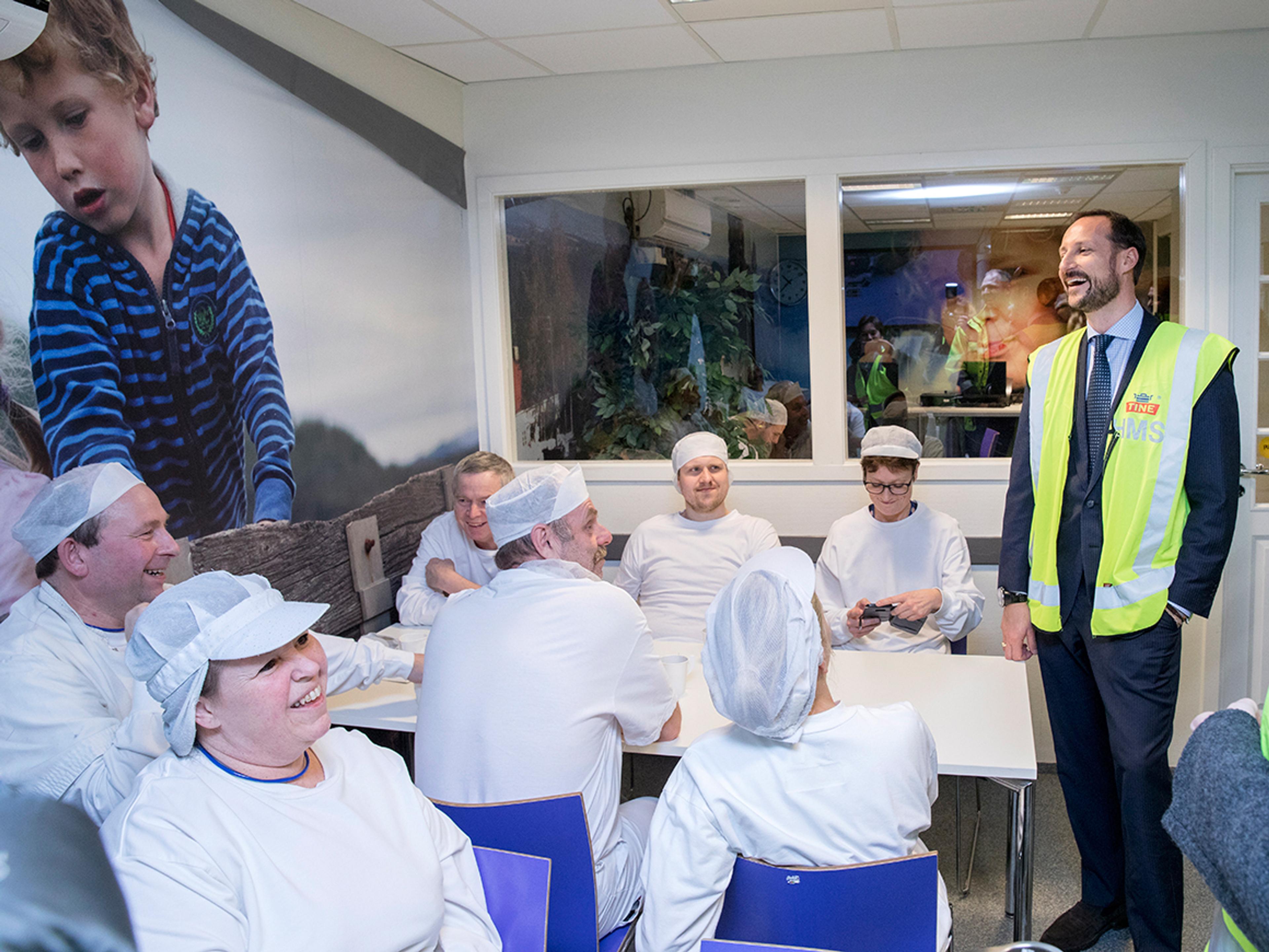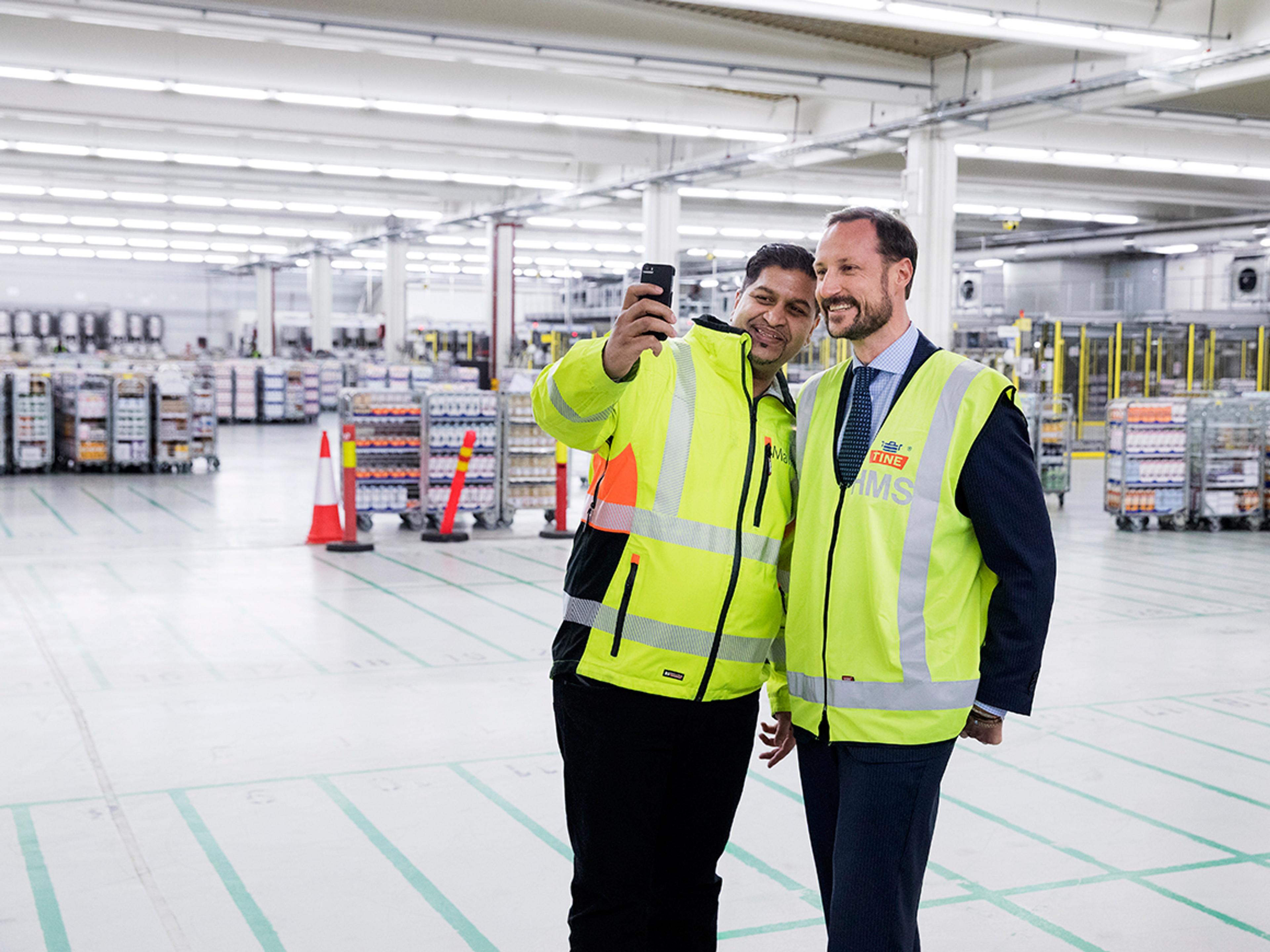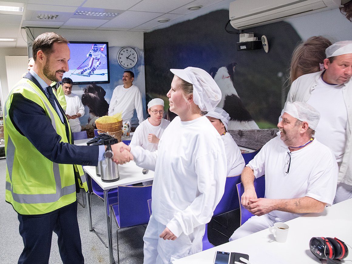 Etter orienteringen var det på med refleksvest og første stopp ble lageret der alle produktene pakkes og sendes ut i butikkene. Herfra går det varer til mer enn 2 000 kunder hver dag: butikker, restauranter, kantiner og institusjoner. På lageret møtte Kronprins Haakon tre av de ansatte som fortalte om sin arbeidshverdag. Kronprinsen fikk også møte folk i melkeproduksjonen og var innom pauserommet for en uformell prat med kveldskiftet. De hadde møtt opp en halv time tidligere på jobb for sosialt samvær før arbeidsdagen startet.