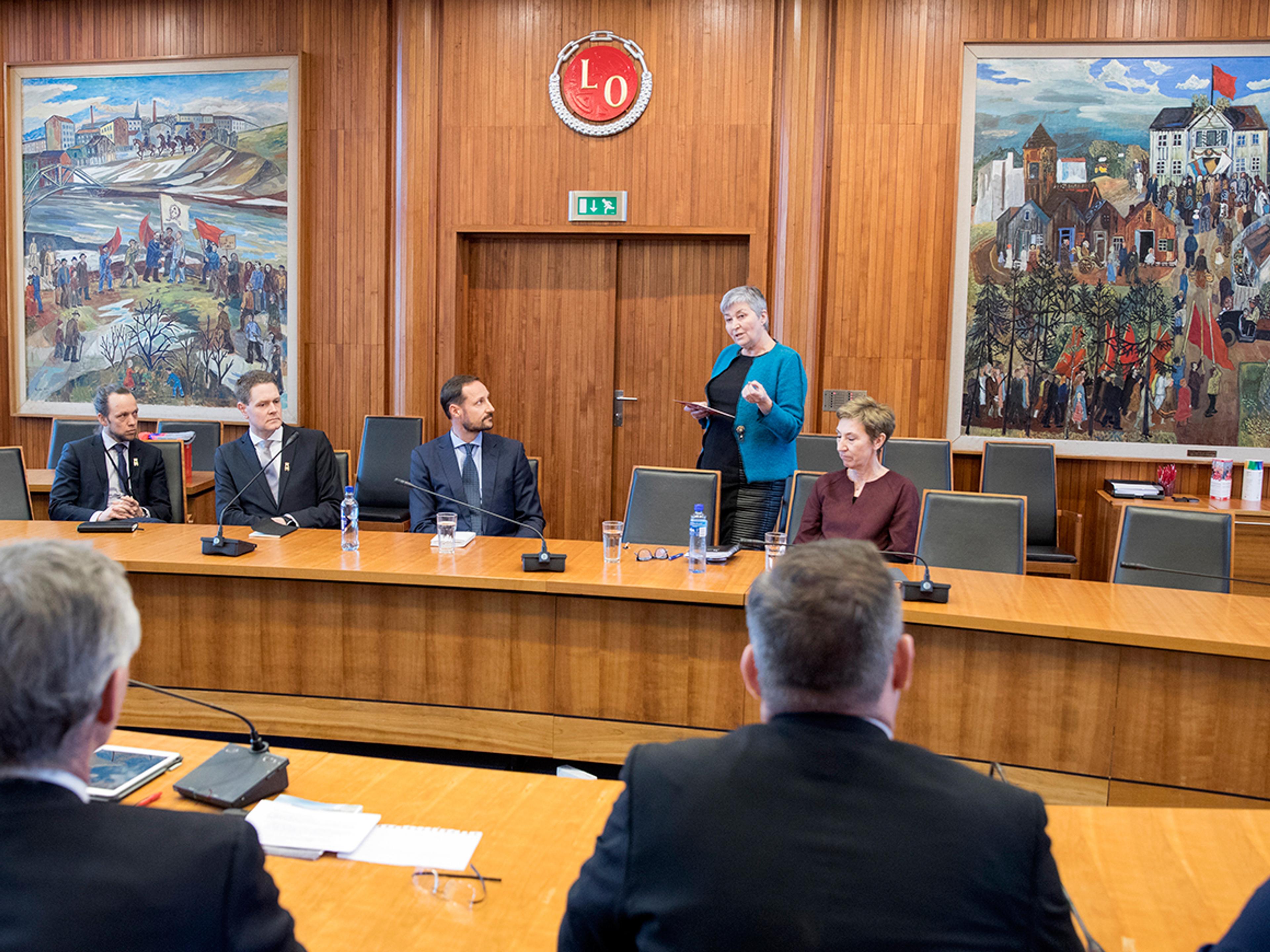 Etter en kort innledning om LO, fikk Kronprins Haakon en dypere innføring i "Den norske modellen": trepartssamarbeidet mellom arbeidstakere, arbeidsgivere og myndigheter. Muligheter og utfordringer som følge av situasjonen i petroleums- og leverandørsektoren og for arbeidstakere innenfor automatisering, digitalisering og delingsøkonomi, sto også på agendaen.
