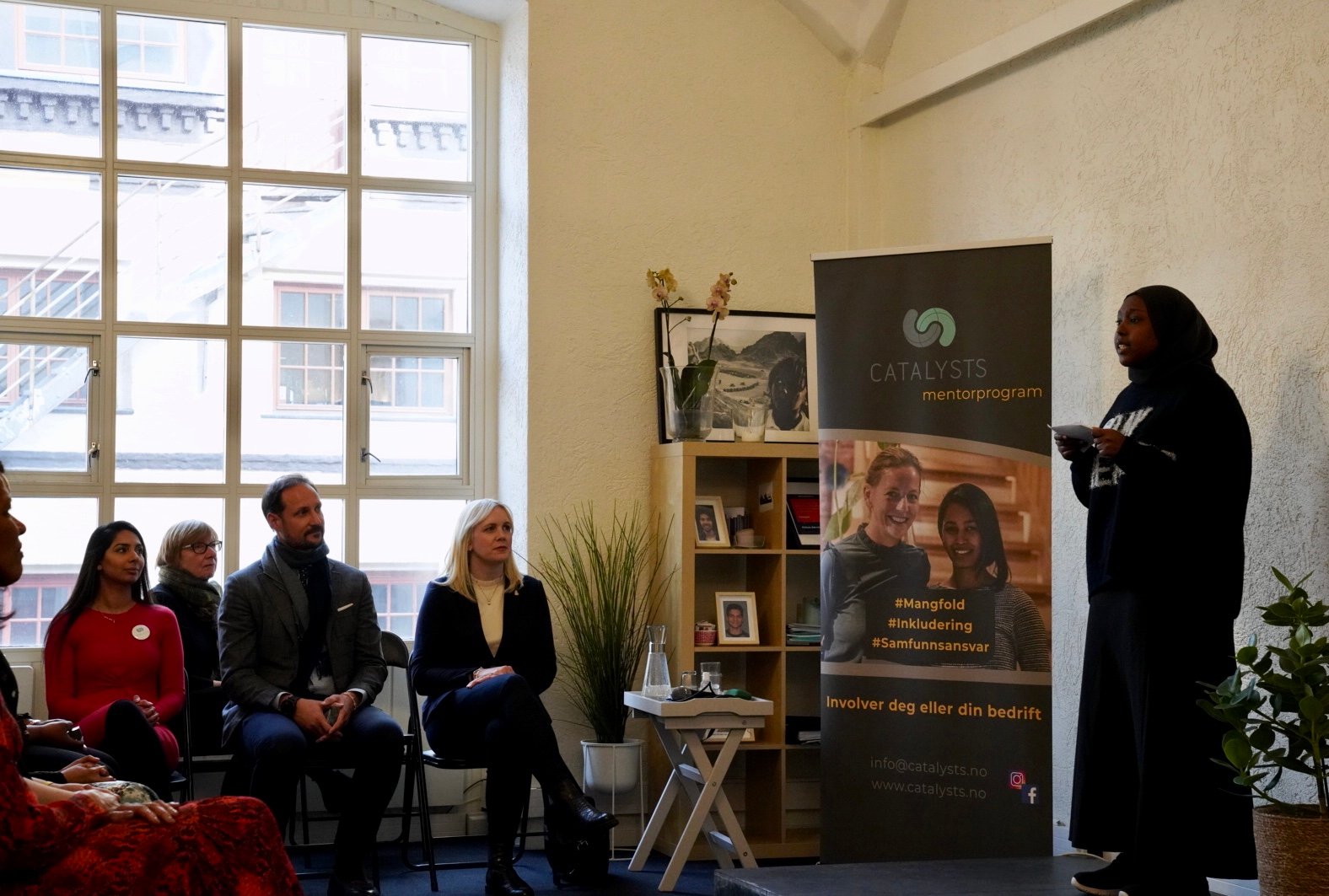 Hans Kongelige Høyhet Kronprins Haakon besøkte i dag mentorprogrammet Catalysts i Oslo. Catalysts kobler flerkulturell ungdom mellom 15 og 30 år med mentorer som kan hjelpe dem å lykkes med skole, arbeidsliv og livet generelt.