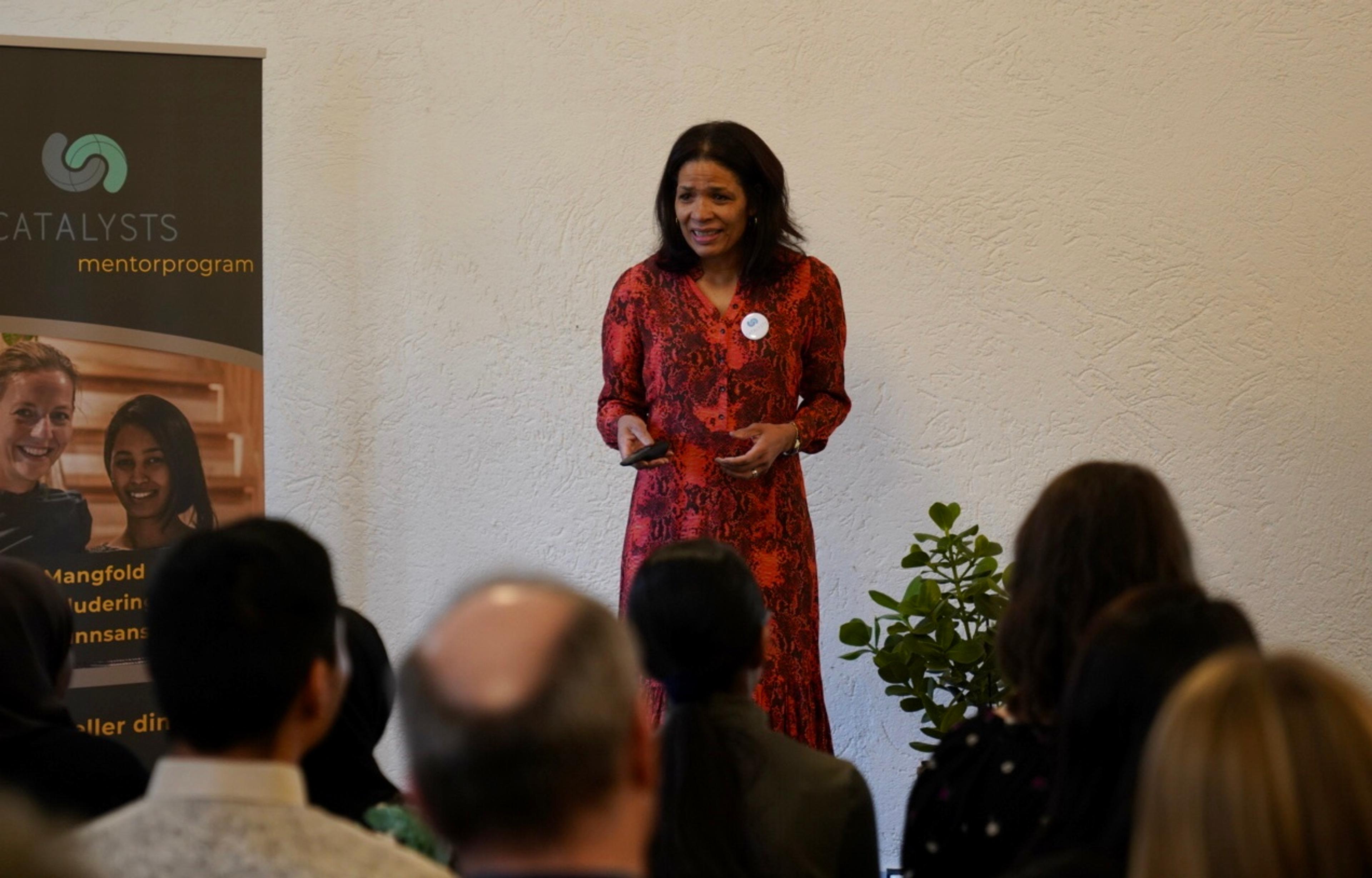 Mentorer og mentees gikk sammen i grupper og drøftet verdien av en mentorordning og følelsen av tilhørighet. Avslutningsvis delte deltakerne sine mestringshistorier.
