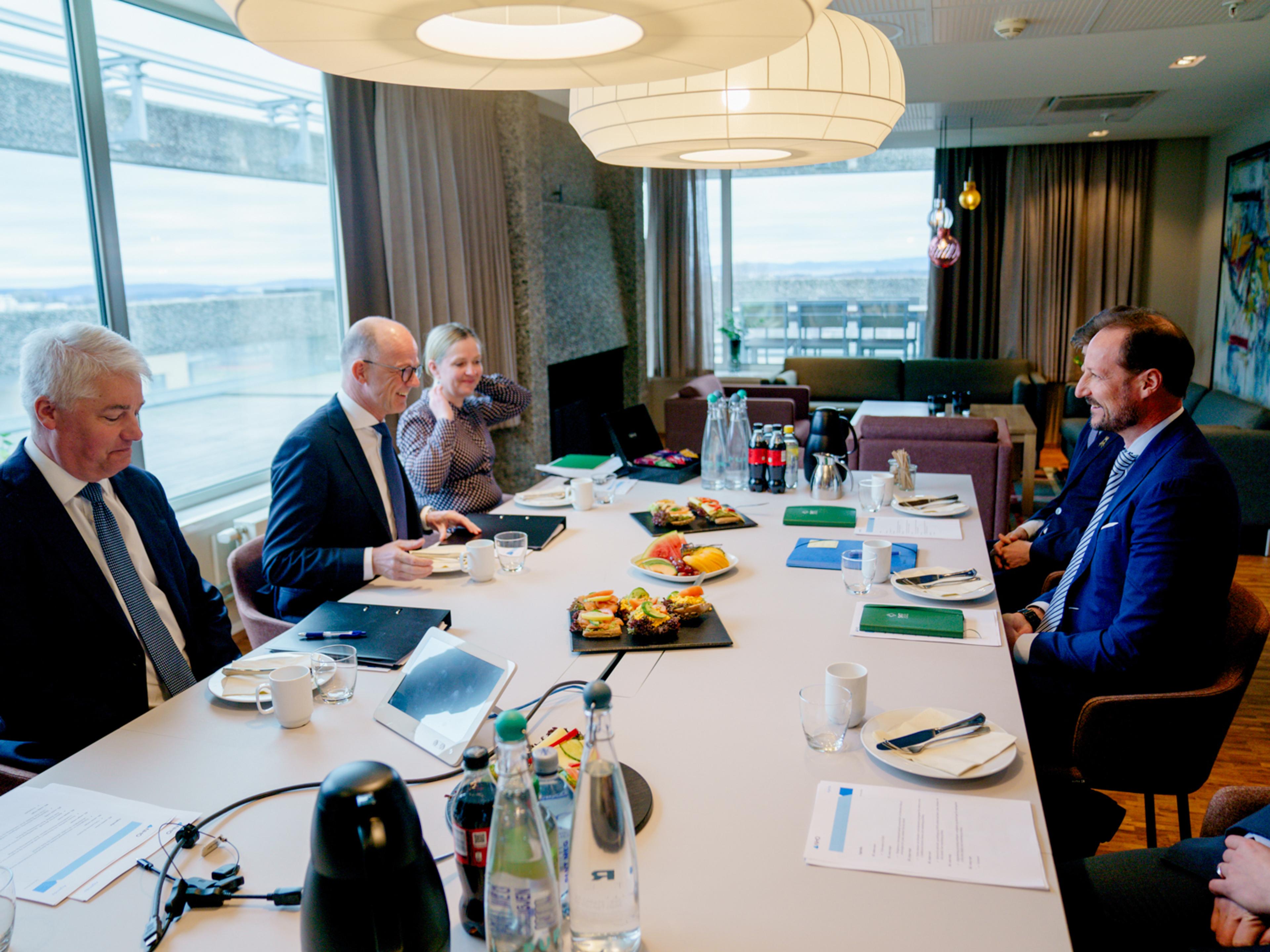 Hans Kongelige Høyhet Kronprins Haakon besøkte i dag Næringslivets Hovedorganisasjon på Majorstua i Oslo. Under besøket stod blant annet utsikter for norsk økonomi, digitalisering og kunstig intelligens på dagsorden.