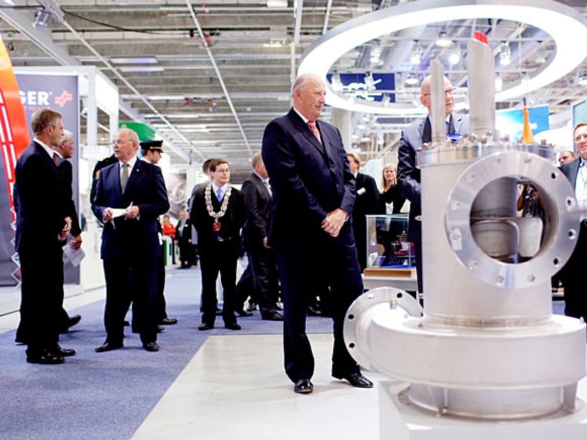 Hans Majestet Kongen besøkte Nor-Shipping 2011 på Noregs Varemesse i Lillestrøm torsdag. Shippingmessa omfattar både konferansar og ei omfattande utstilling, og Kongen besøkte fleire av utstillarane under besøket.