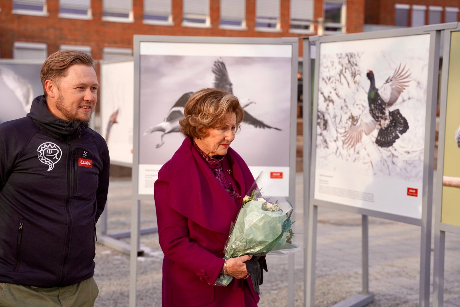 Utendørs fikk Dronningen se utvalgte naturfotografier fra verdens største fotokonkurranse - Cewe Photo Award.