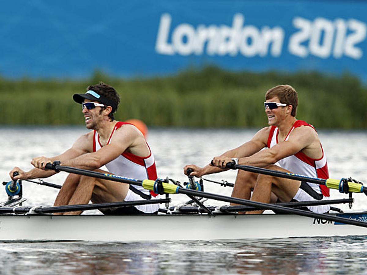 Søndagens program startet med en liten norsk opptur på roarenaen Eton Dorney. Kronprins Haakon, IOC-president Jacques Rogge og idrettspresident Børre Rognlien var blant tilskuerne da Norges lettvektsdobbeltsculler med Kristoffer Brun og Are Strandli tok seg videre til semifinale i OL etter en overraskende 2. plass. Danmark vant med tiden 6.33,11 mot nordmennenes 6.34,00.