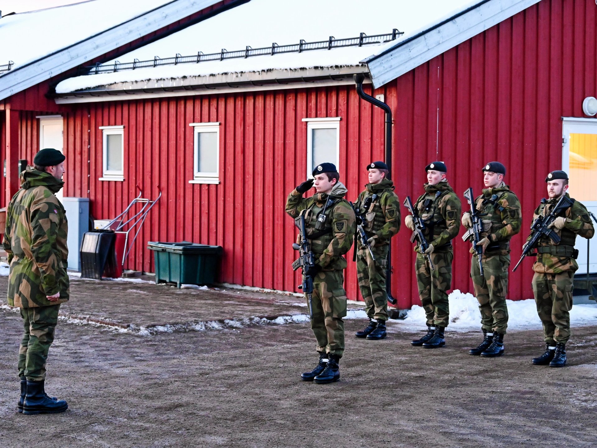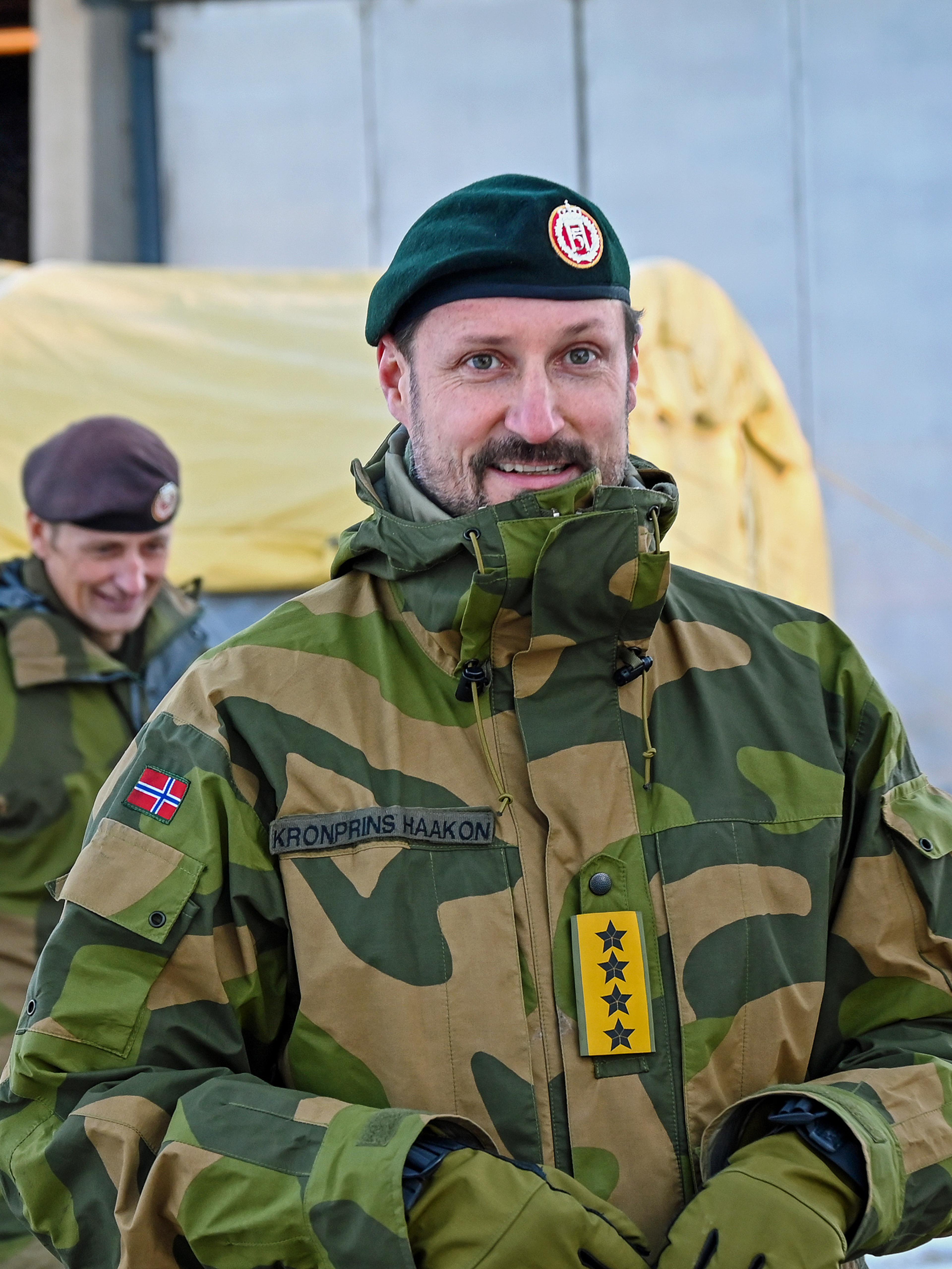 Etter velkomsten inspiserte Kronprins Haakon vaktstyrken som sto oppstilt ved leirvakten.