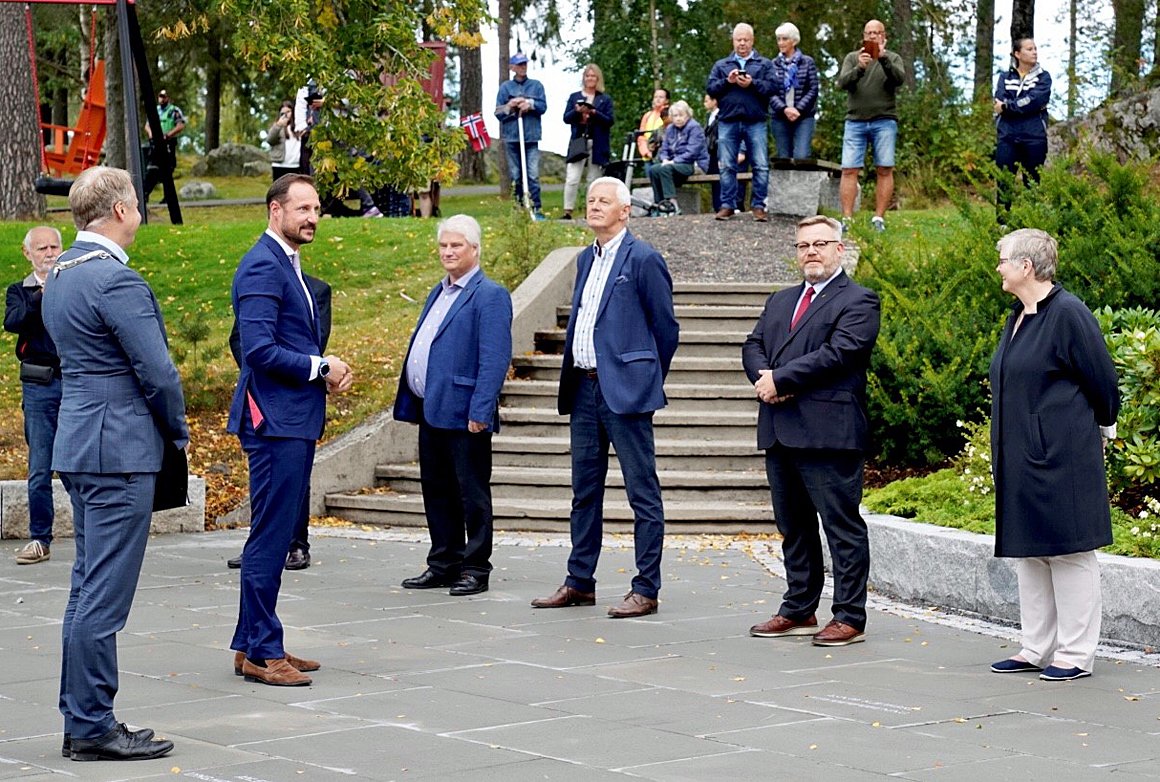 Ordfører Saxe Frøshaug fortalte Kronprinsen om erfaringer og hvordan kommunen responderte på smitteutbruddet i starten av august. Skoler og barnehager ble stengt – sammen med veldig mye annet. Det ble også vedtatt en forskrift som regulerte private sammenkomster.