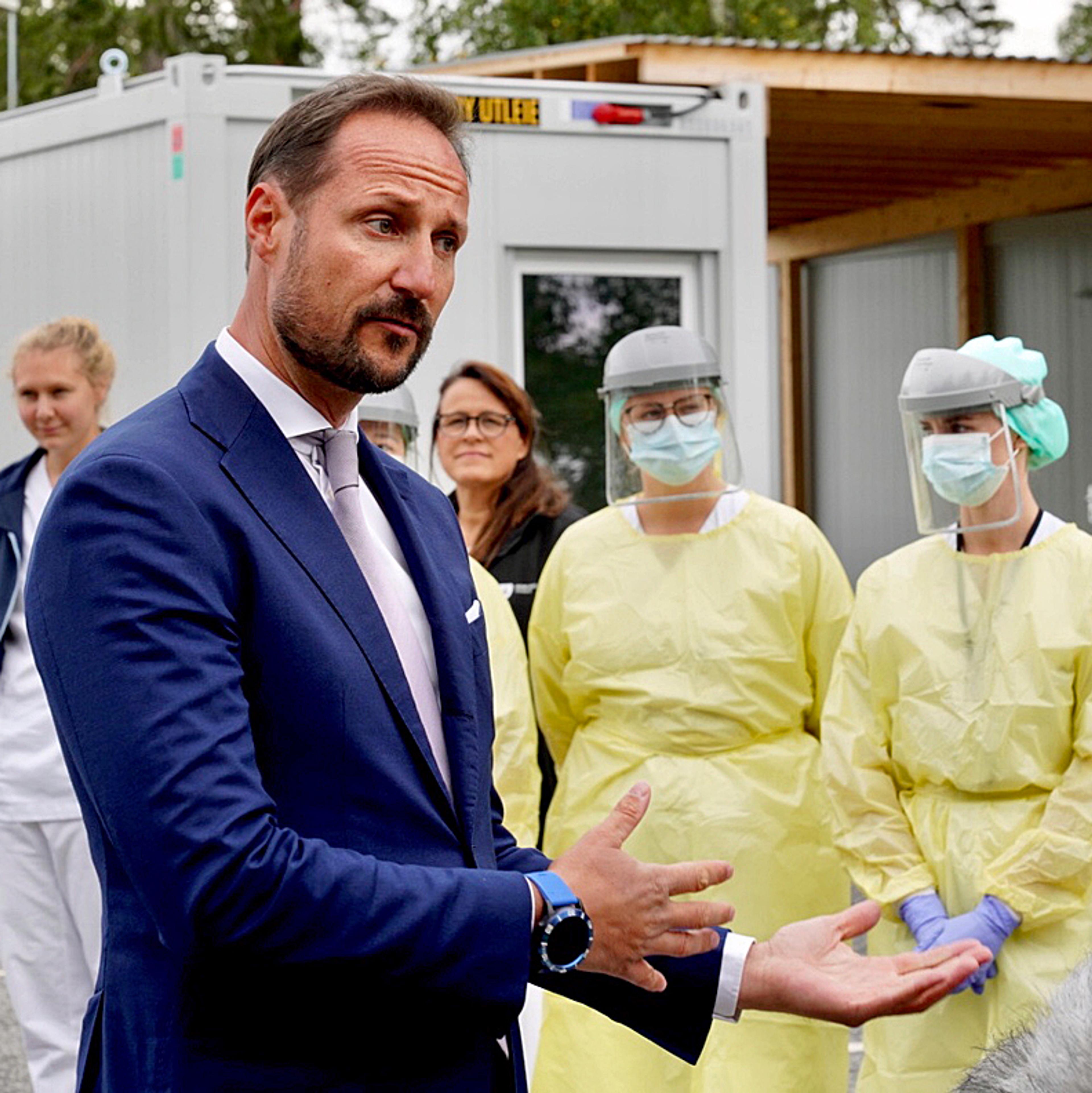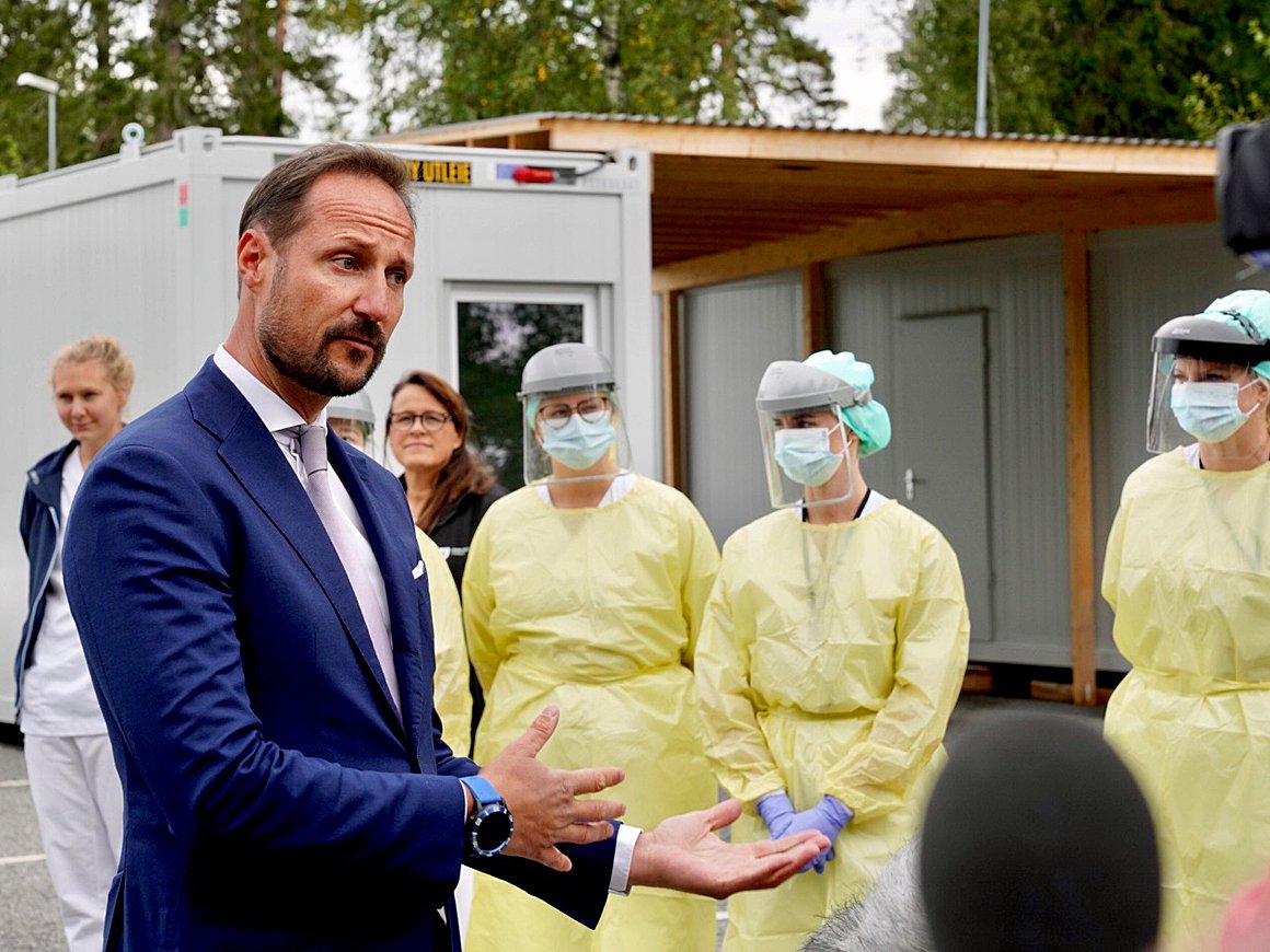 Kronprinsen besøkte den mobile teststasjonen for covid-19 som står på parkeringsplassen ved Askimhallen. Personer som skal teste seg, møter opp til avtalt tid og blir testet mens de sitter i bilen.