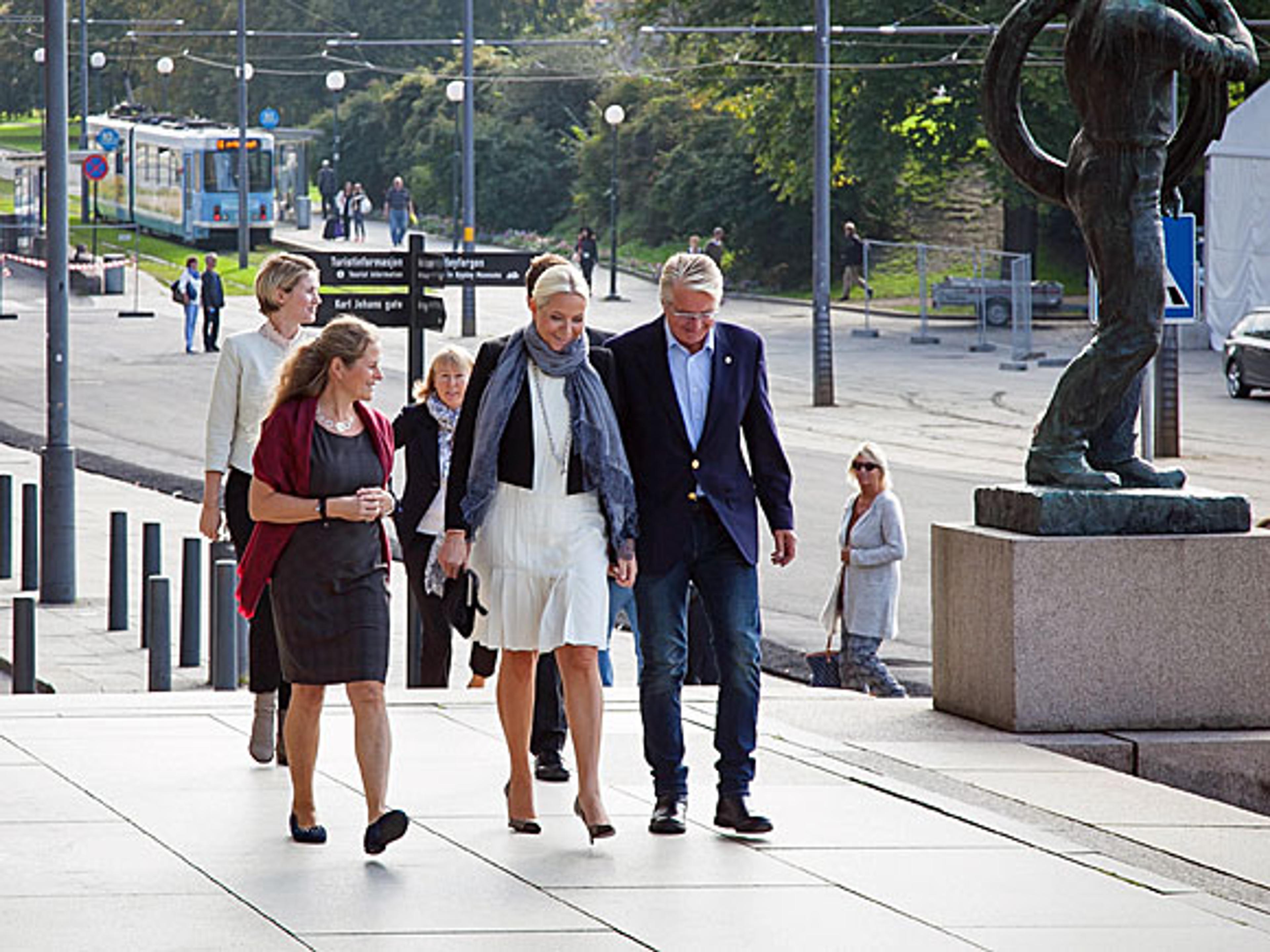 Kurator Deborah Przedpelska og kunstner Tommy Hansen viste Kronprinsesse Mette-Marit og Oslos ordfører Fabian Stang rundt i utstillingen.