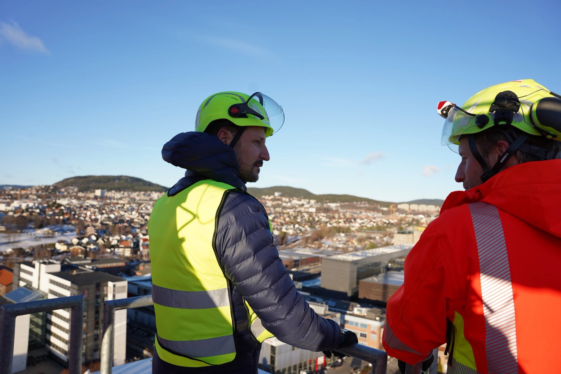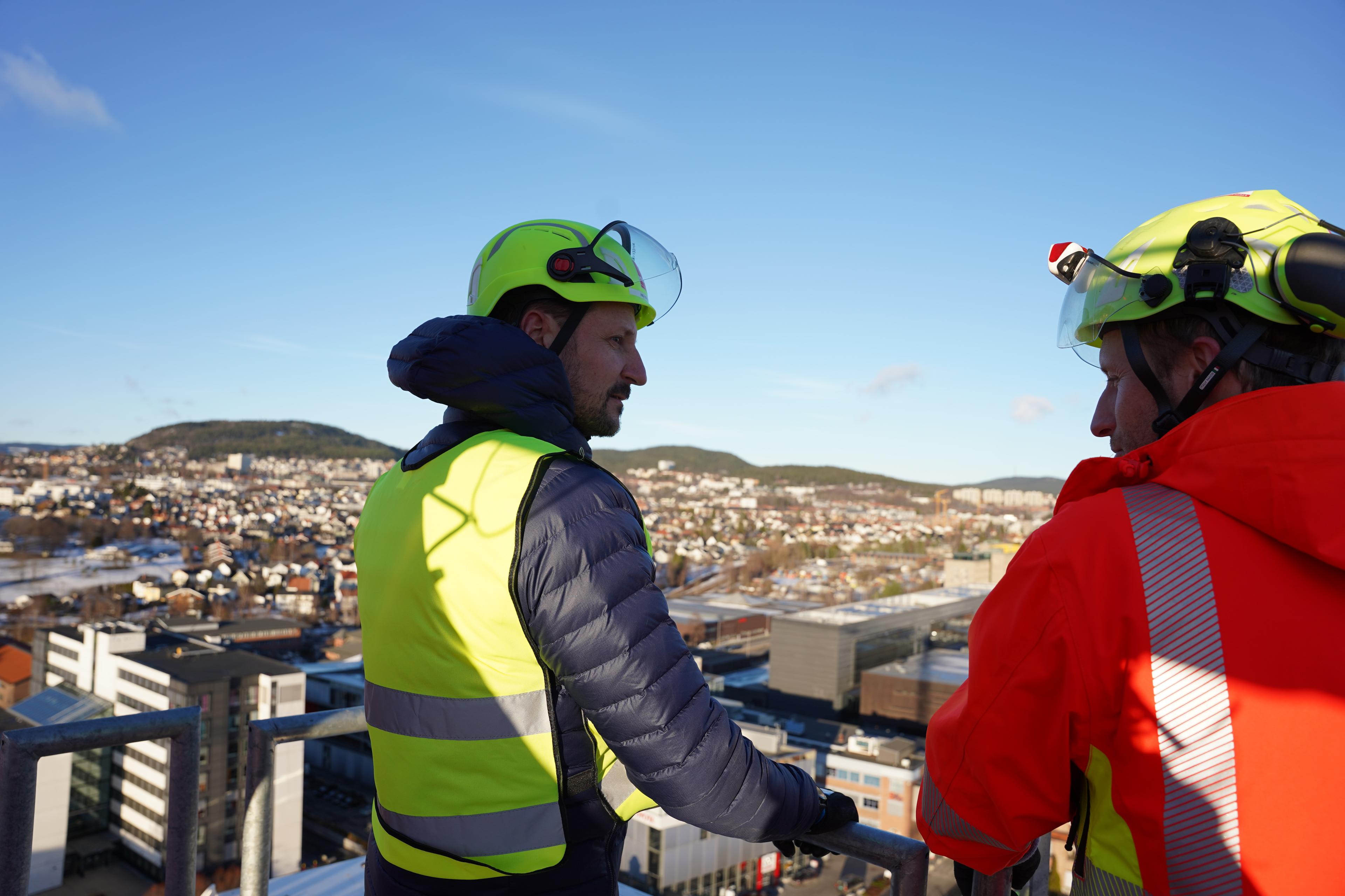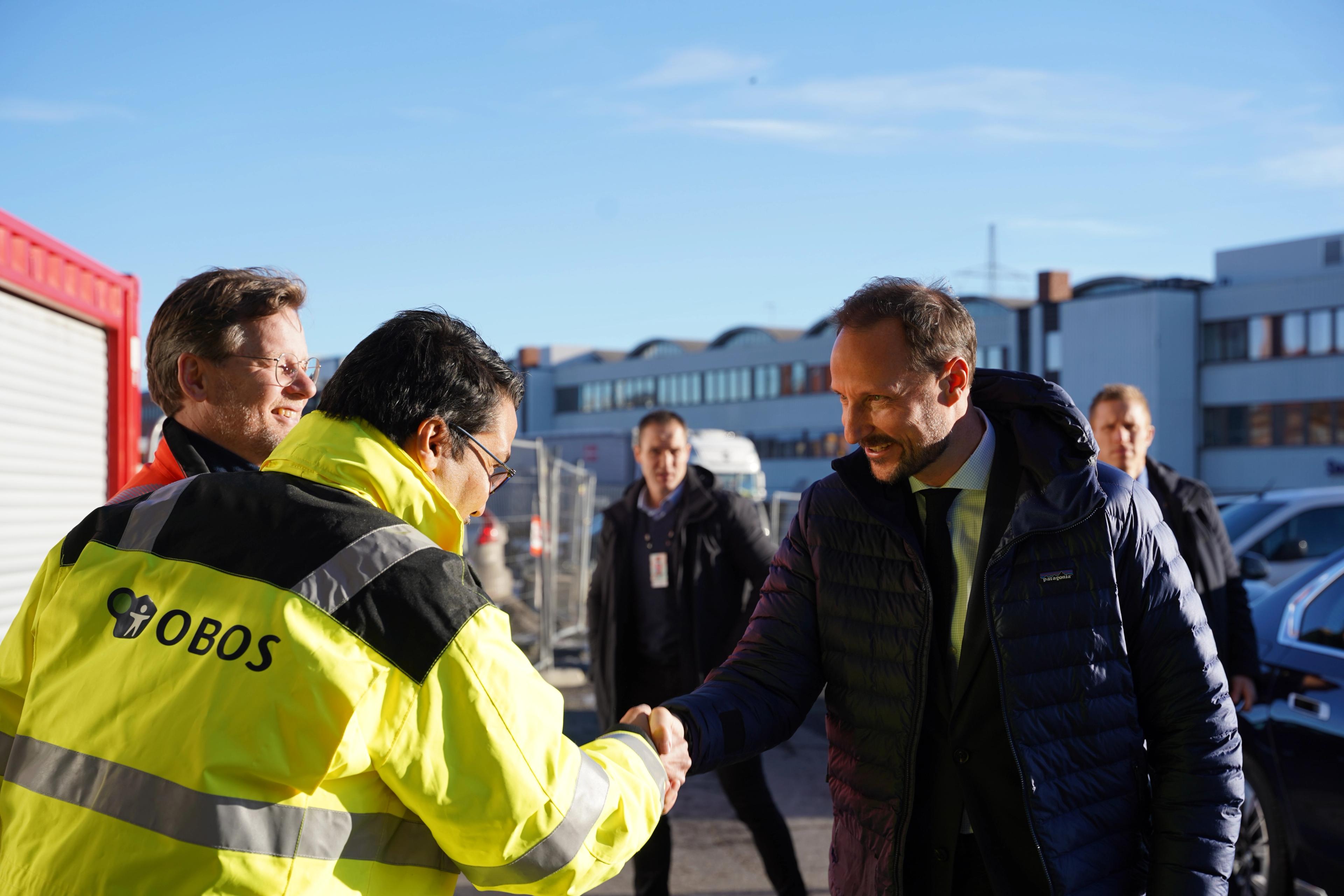Konsernsjef i Veidekke Jimmy Bengtsson og konserndirektør Lars Erik Lund orienterte om selskapet, og konsernsjef i OBOS Daniel K. Siraj fortalte om hvordan Veidekke og OBOS arbeider sammen. Kronprinsen fikk høre mer om hvordan de ser for seg fremtidens byutvikling, med fokus på klimavennlige løsninger og bærekraftig boligutbygging.