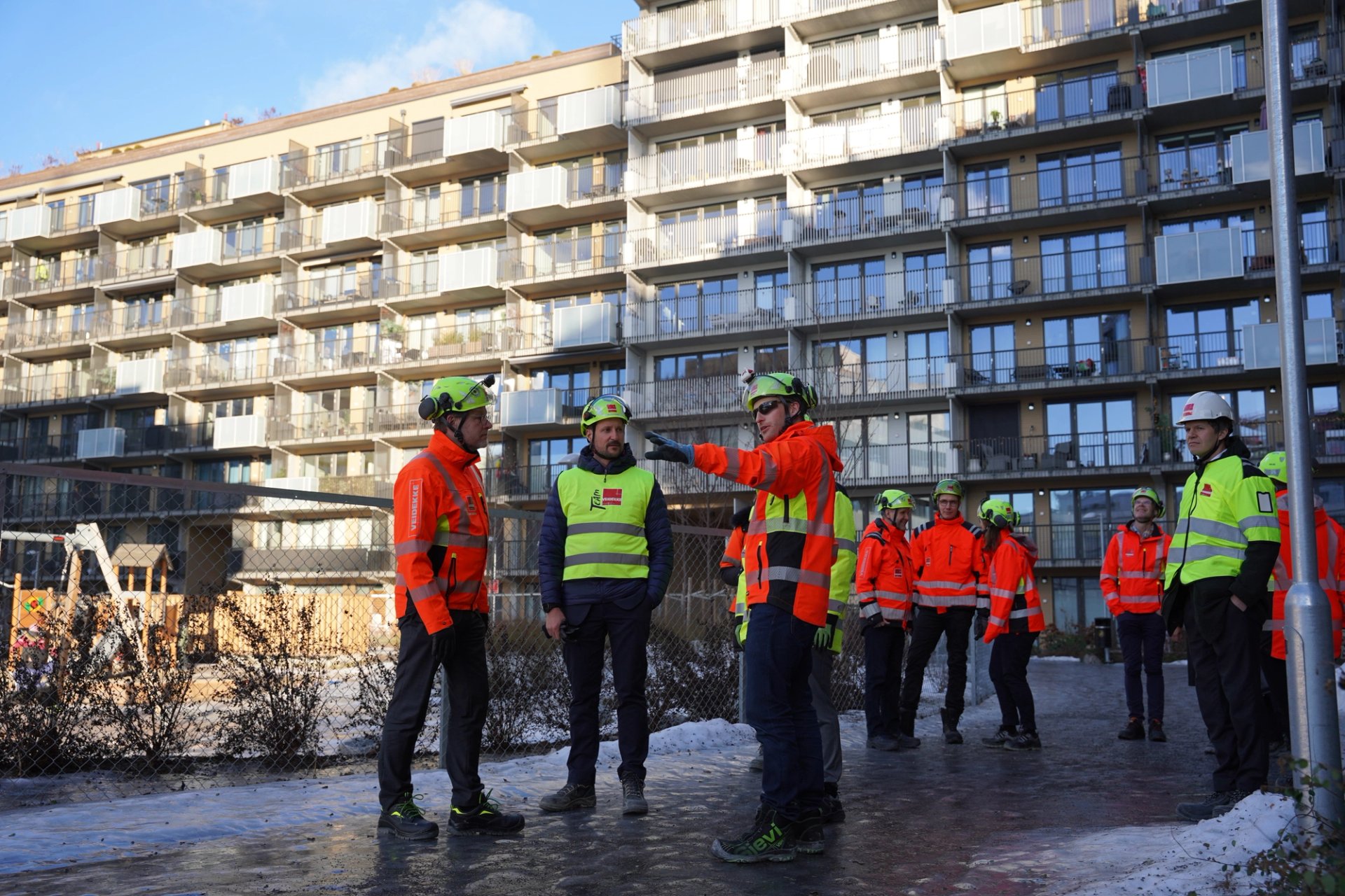 Hans Kongelige Høyhet Kronprins Haakon besøkte i dag Veidekke og Ulvenprosjektet i Oslo. Der møtte han ansatte i bygg- og anleggsbransjen og fikk høre mer om fremtidens boligbygging.