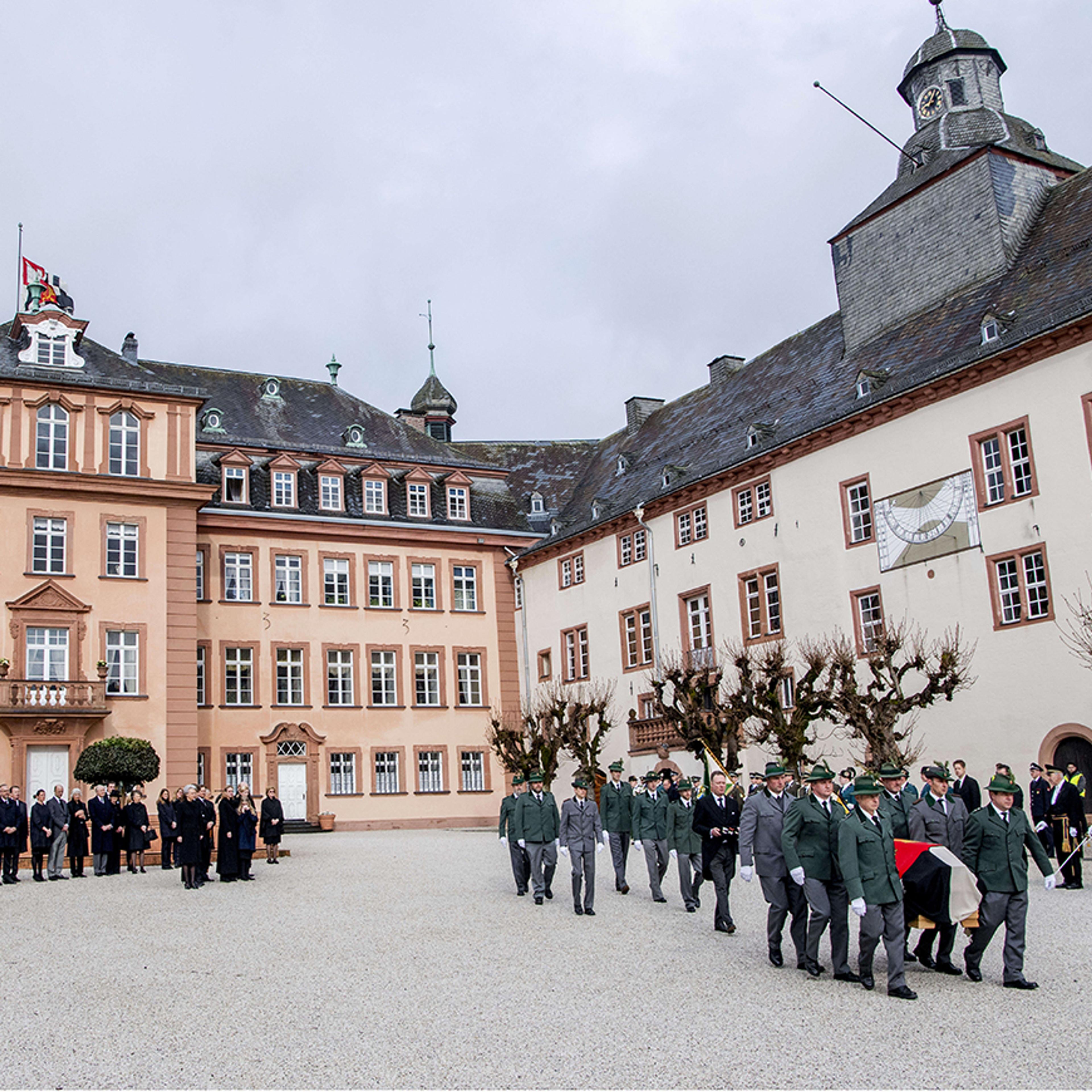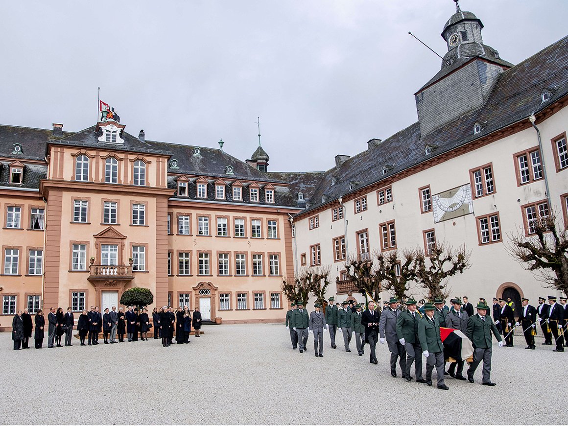 Etter seremonien i kirken var det det en sørgestund for familie og gjester på Berleburg slott.