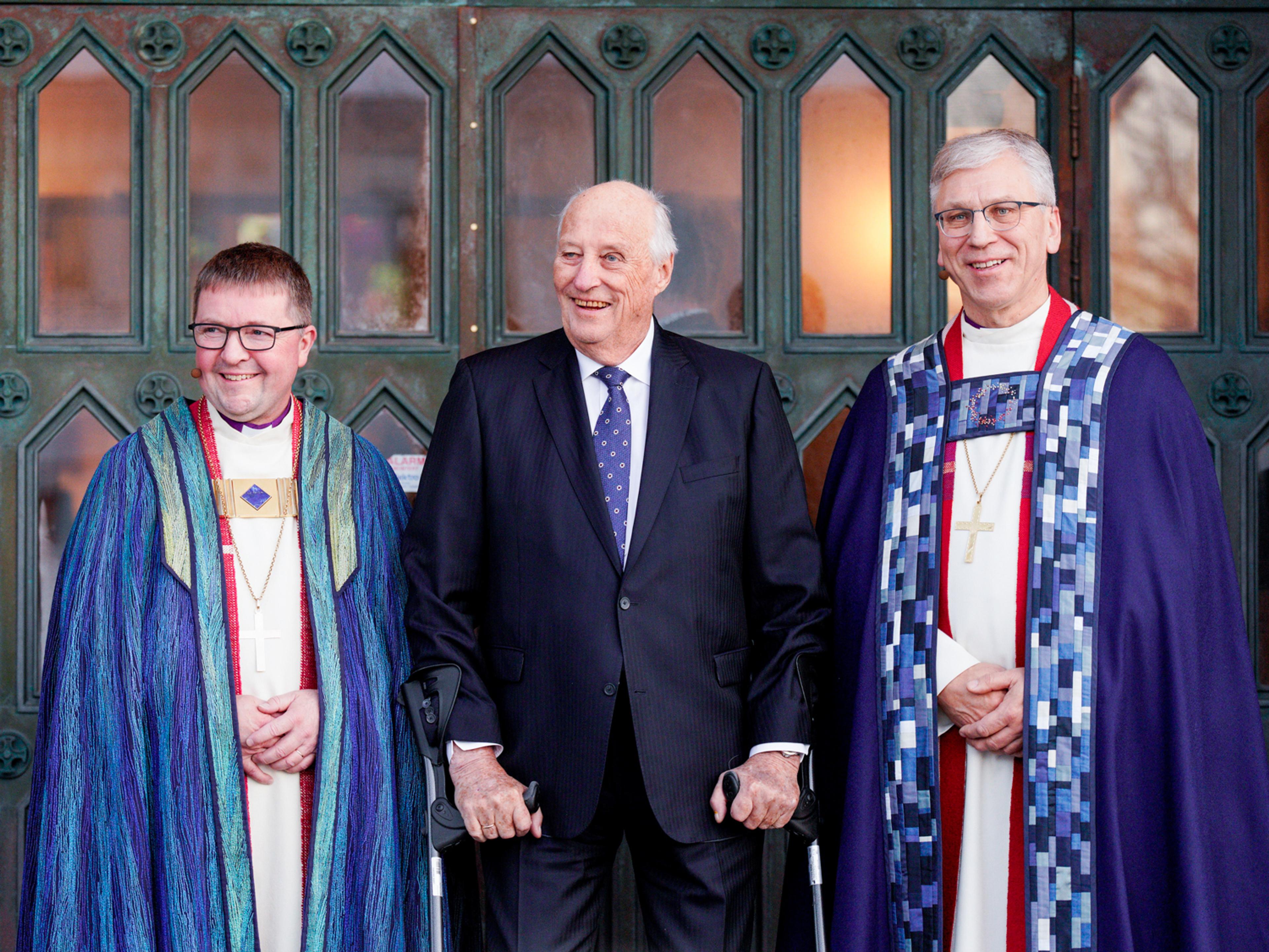 Etter gudstjenesten i Bodø domkirke var Kong Harald og statsråd Kjersti Toppe til stede ved en mottakelse på Hotell Ramsalt til ære for den nye biskopen.