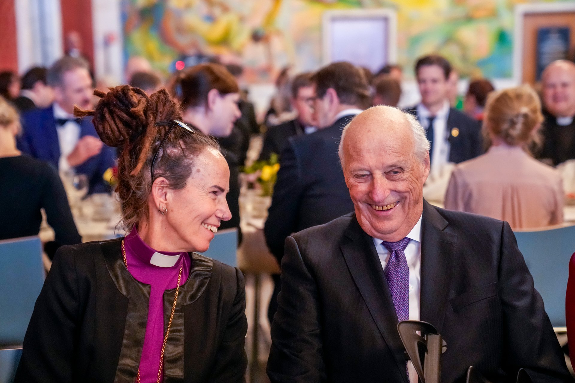 Etter gudstjenesten var Kongen til stede under en mottakelse til ære for den nye biskopen i Oslo rådhus.