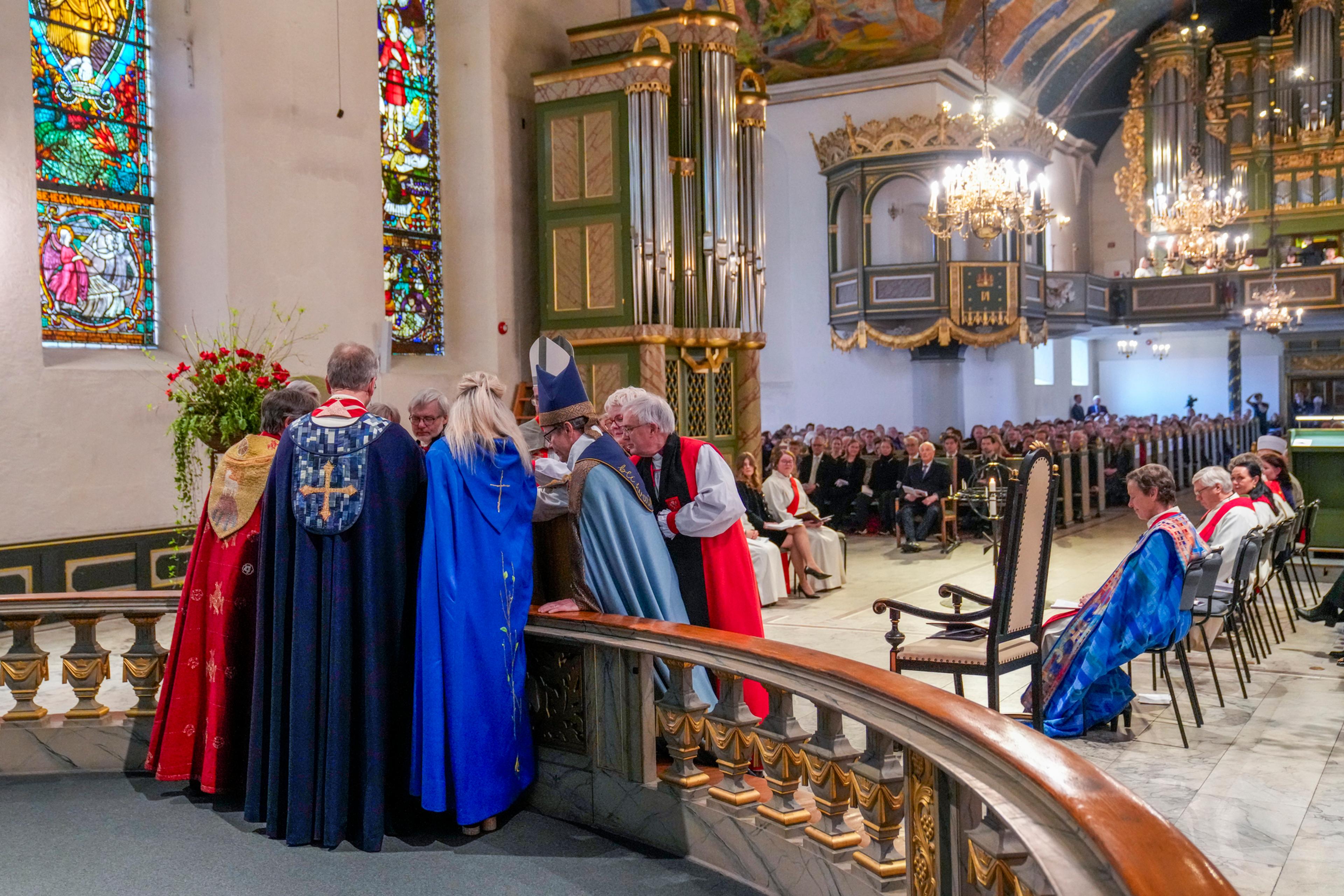 Som et tegn på vigslingen avga Gylver et løfte til kirkens ledende biskop Olav Fykse Tveit, før han la et gullkors rundt halsen hennes.