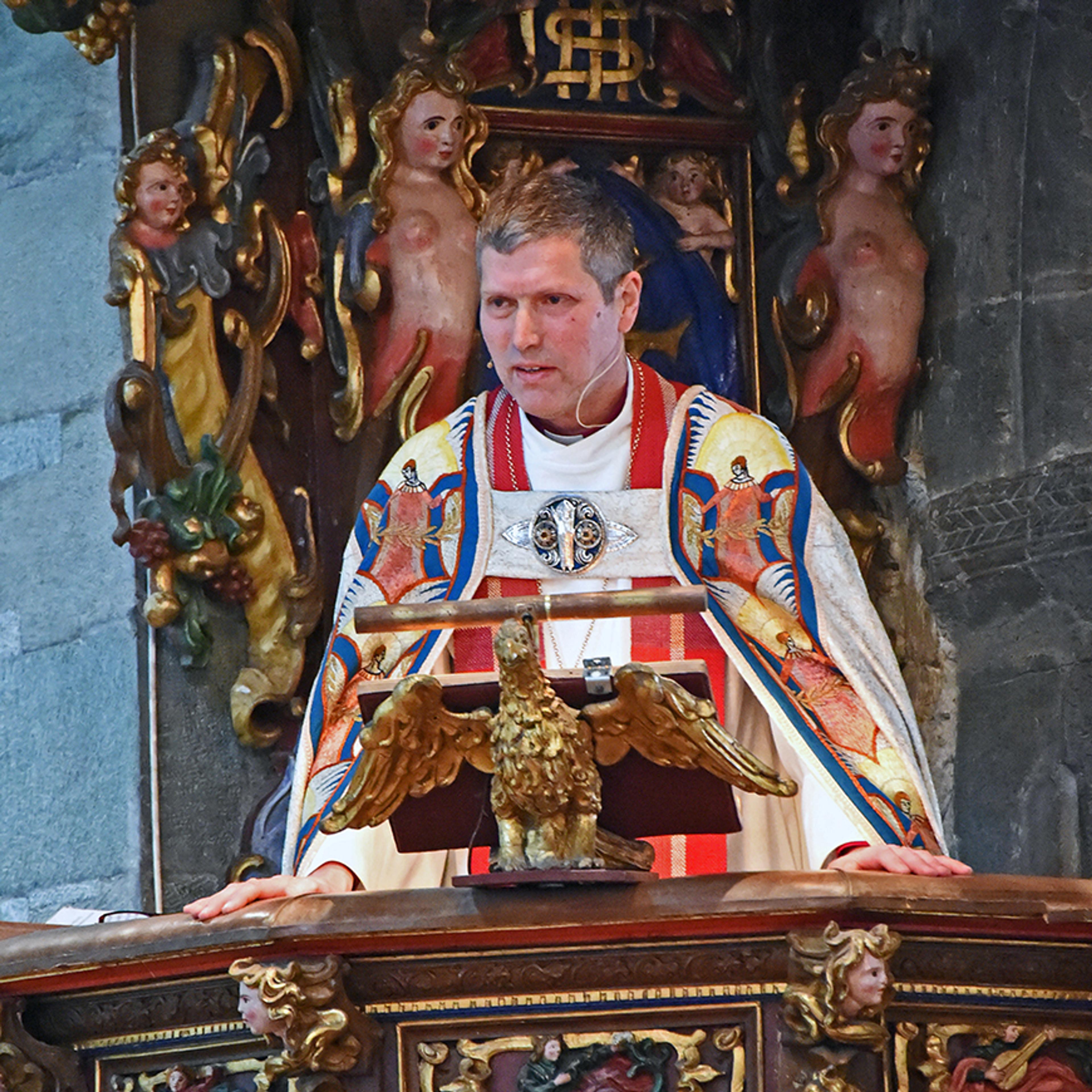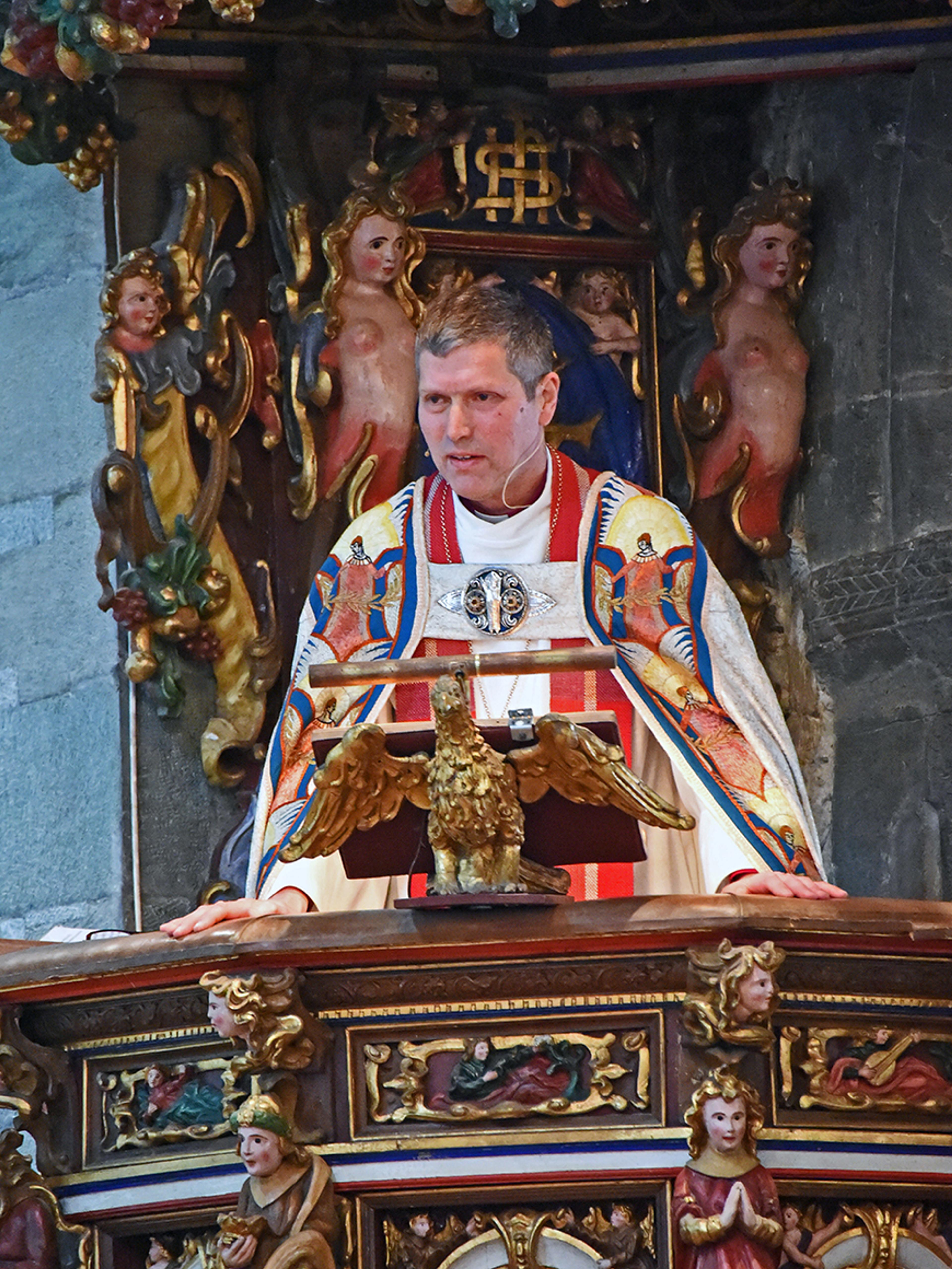 Vigslingsgudstenesta i Stavanger domkyrkje vart forretta av leiaren for Bispemøtet, preses biskop Helga Haugland Byfuglien.