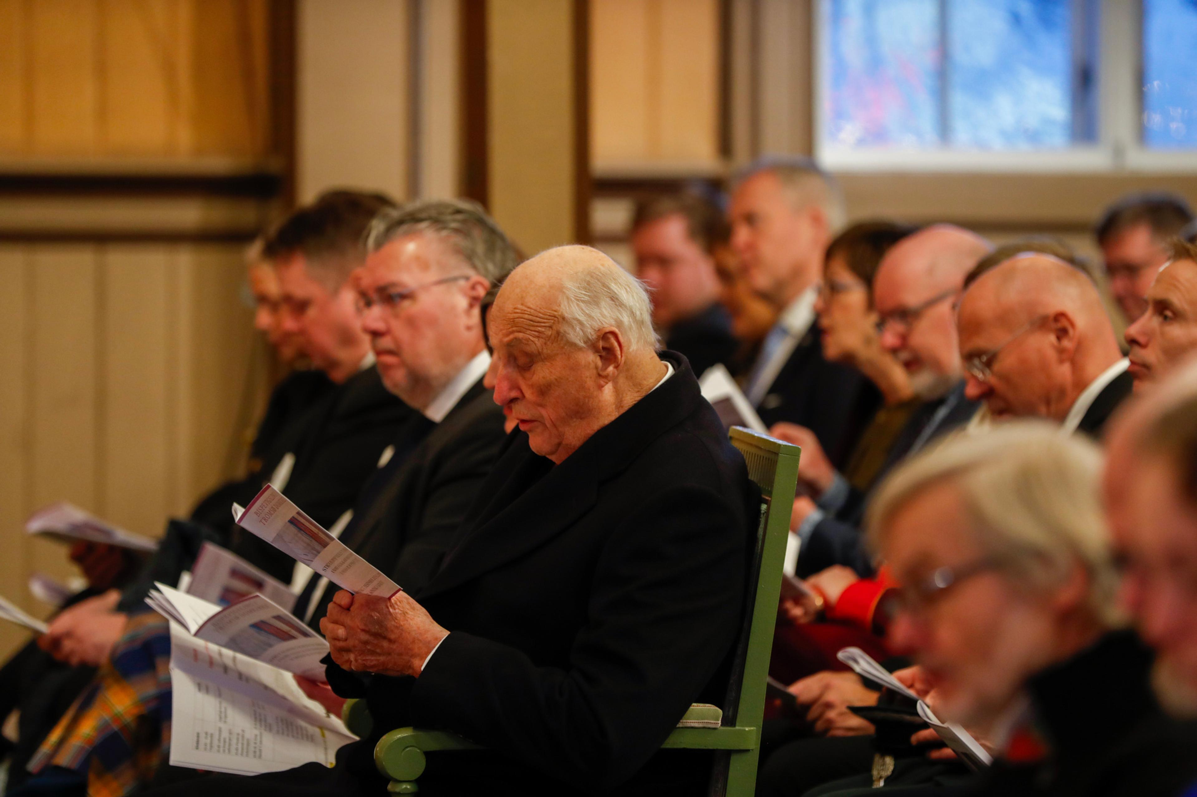 Etter gudstjenesten var Kongen til stede under en mottakelse til ære for den nye biskopen på Clarion Hotell The Edge i Tromsø.