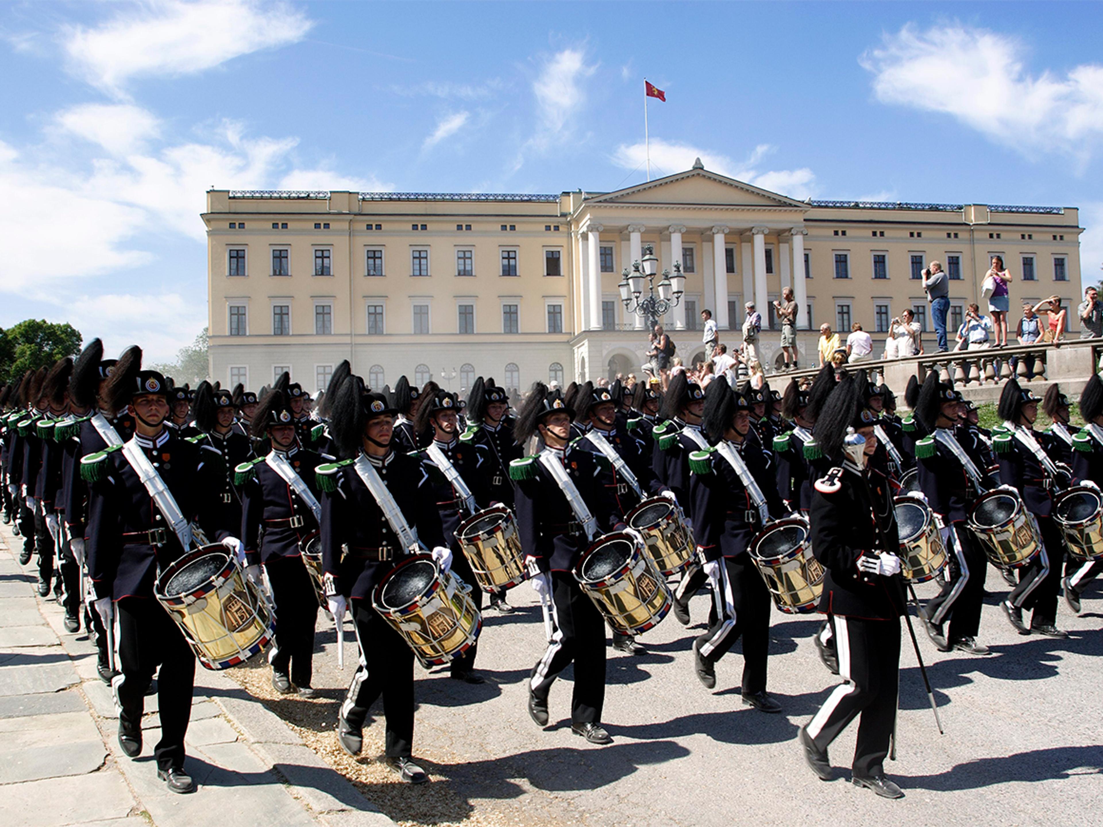 Hans Majestet Kongens Garde fører an. De marsjerer fra Slottet mot Operaen klokken 18.15. Fra 18.30 kjører de kongelige gjestene fra inn- og utland etter.