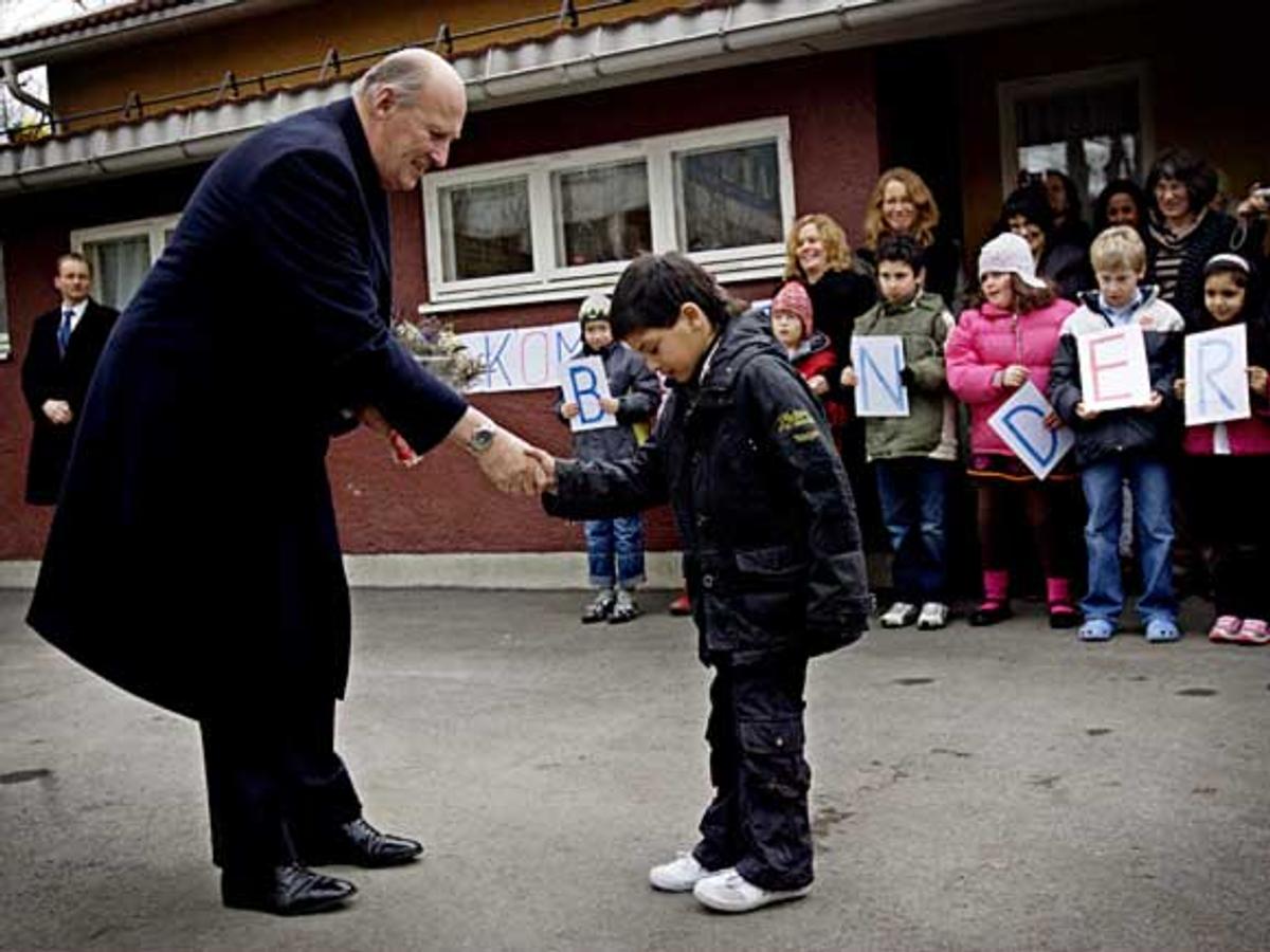 Fredag besøkte DD.MM. Kongen og Dronningen Blindernveien skole i Oslo. Det var åtte år gamle Guido Lindstrøm som hadde skrevet til Kong Harald og spurt om Kongen kunne komme på besøk til skolen hans.
