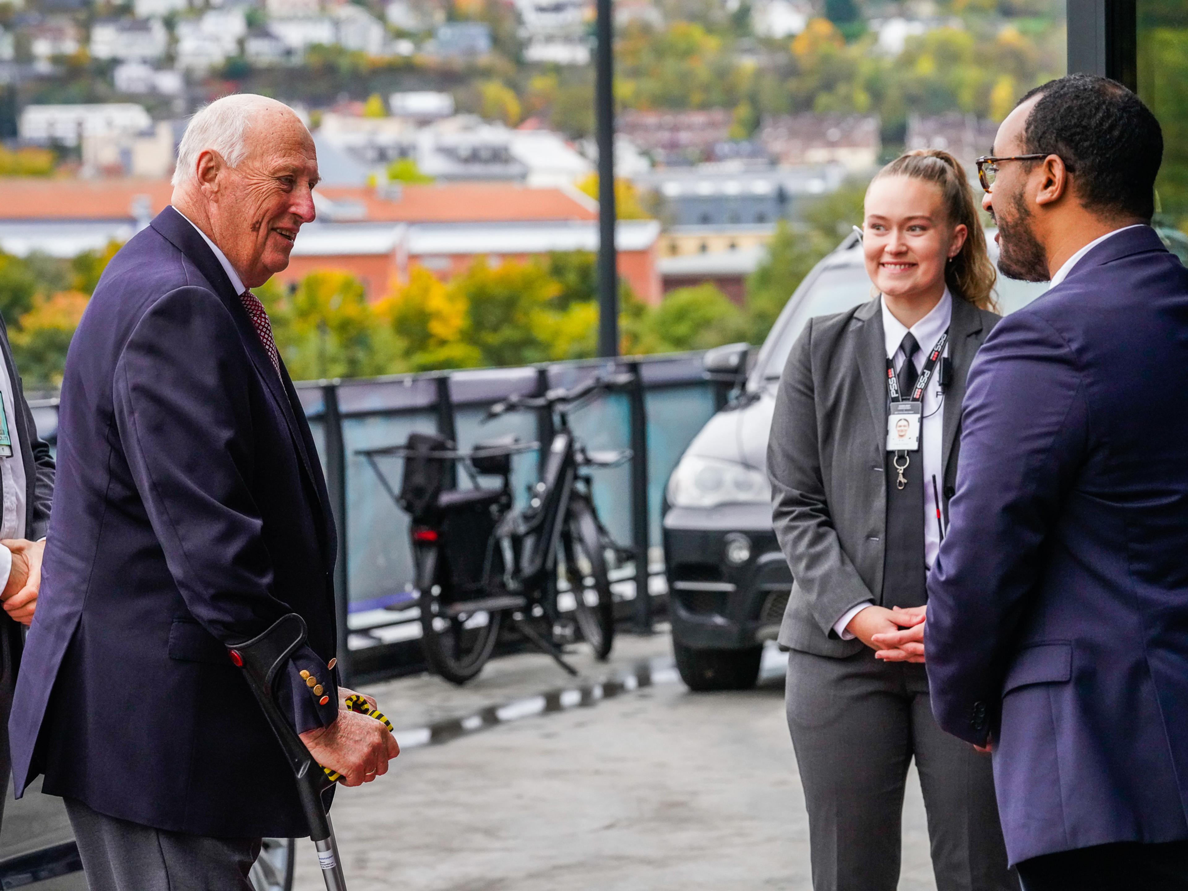 På onsdag var Kong Harald til stede under kvalifiseringen for kvinner i nye Jordal Amfi i Oslo.