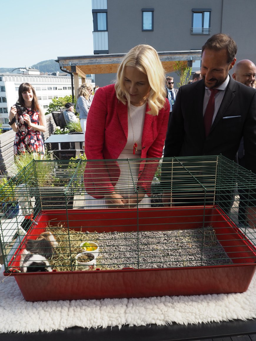 Kronprinsparet ble møtt av Treschowkoret og barnehagebarn da de ankom Sagene seniorsenter i Treschows hus. På taket ble det orientering om bydelens urbane dyrkingsprosjekt «Spiselige Sagene», og Kronprinsparet snakket med noen av seniorene som nyter utsikten og å grave i jorda på takterrassen.