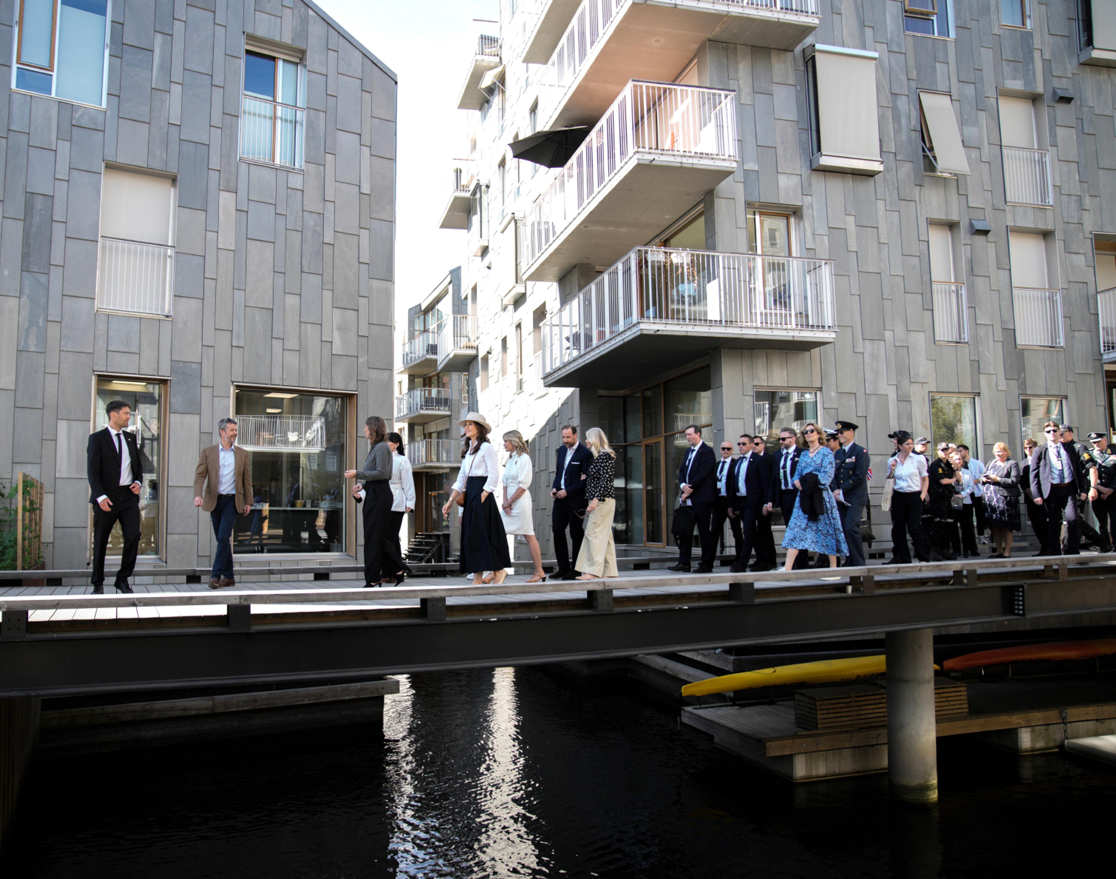 Etter lunsj ble det byvandring i Bjørvika - Oslos havneområde. Det kongelige følget fikk se norsk-danske løsninger på framtidens byrom, ledsaget av Oslos ordfører Anne Lindboe og danske Christian Pagh, direktør for Oslo arkitekturtriennale. Underveis møtte de arkitekter og andre aktører engasjert i de ulike prosjektene.