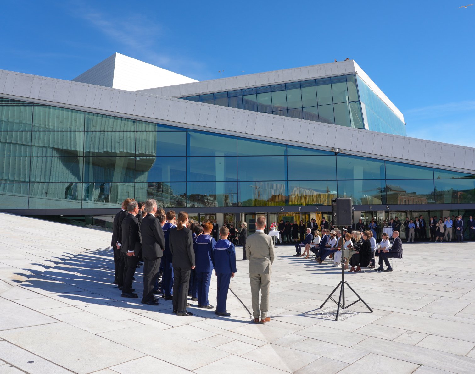 Det ble også en tur opp på Operataket - dette byrommet som ga publikum en ny utsikt over havnen og byen. I dag sang Operaens barnekor og Copenhagen Boys' Choir - Det Kongelige Kantori for det kongelige følget.
