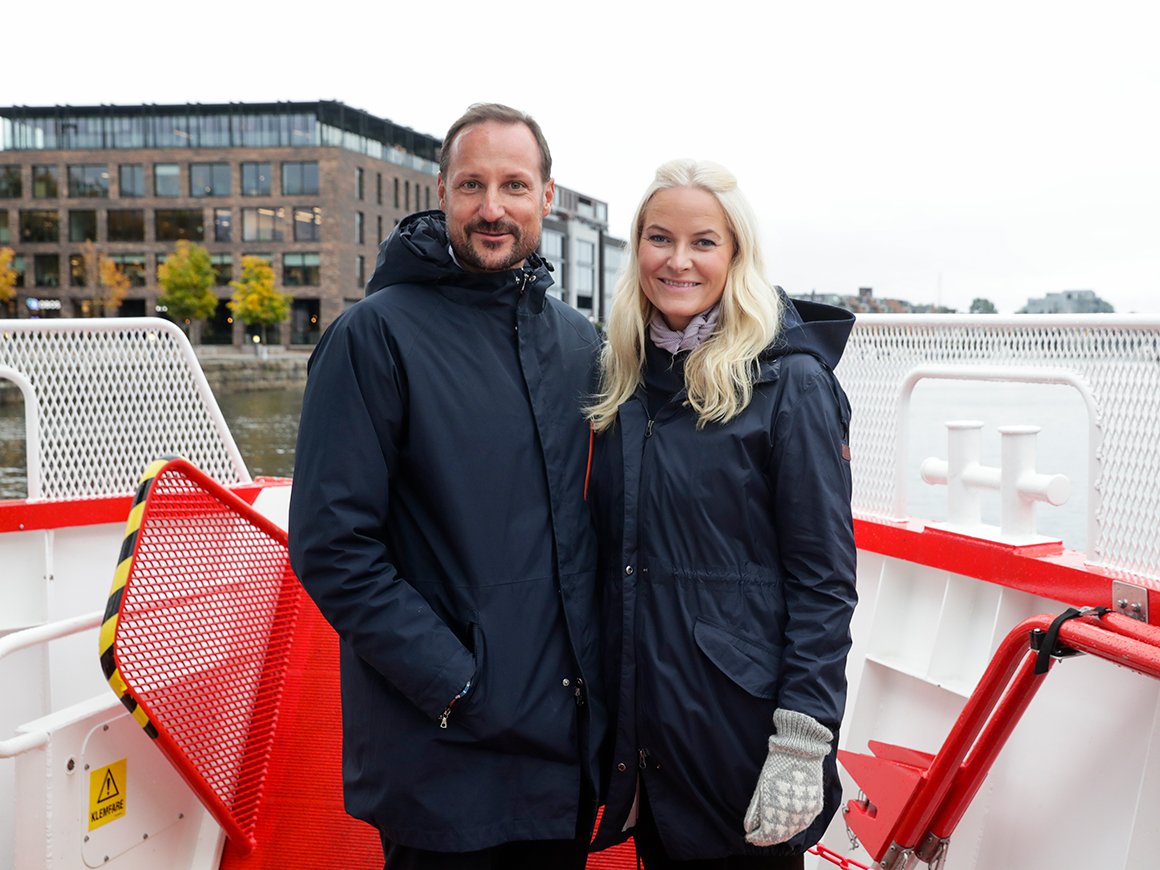 Kronprinsparet steg så om bord i en elektrisk byferge med kurs for Gamlebyen i Fredrikstad.