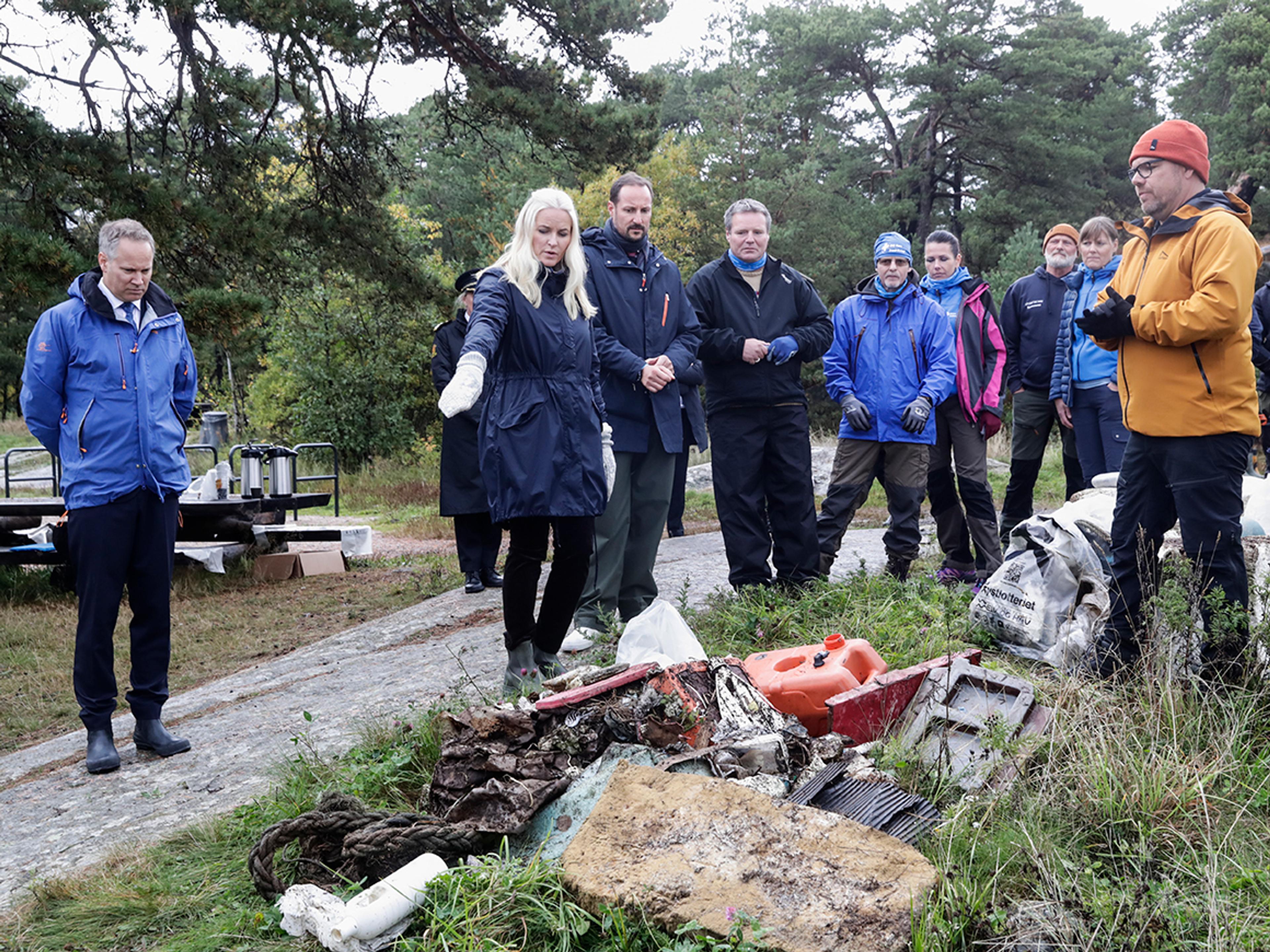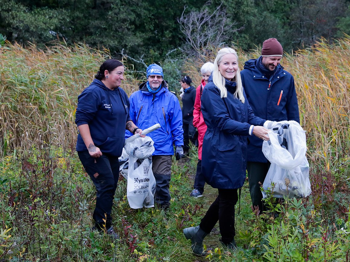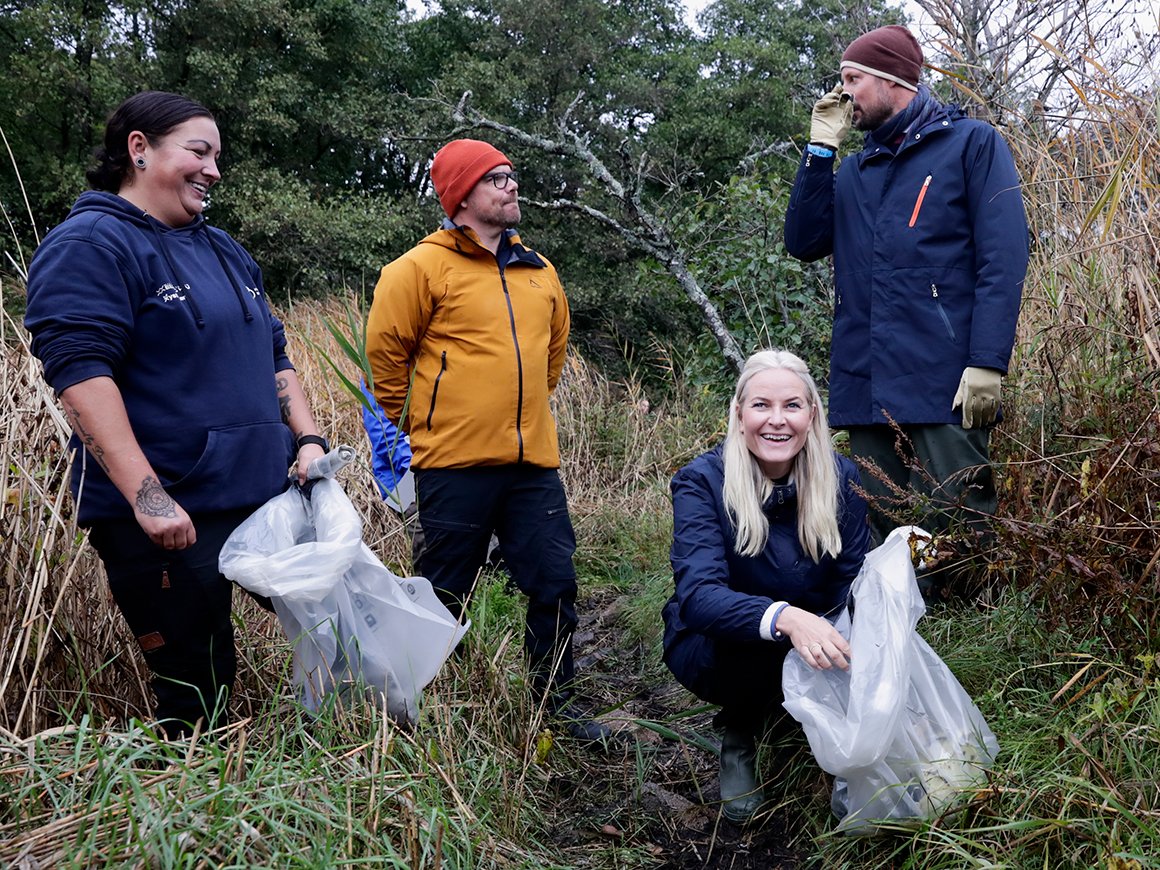 Kronprinsparet ryddet avfall på avveie sammen med Maritim Omsorg og folk fra Kriminalomsorgen og Blå Kors.