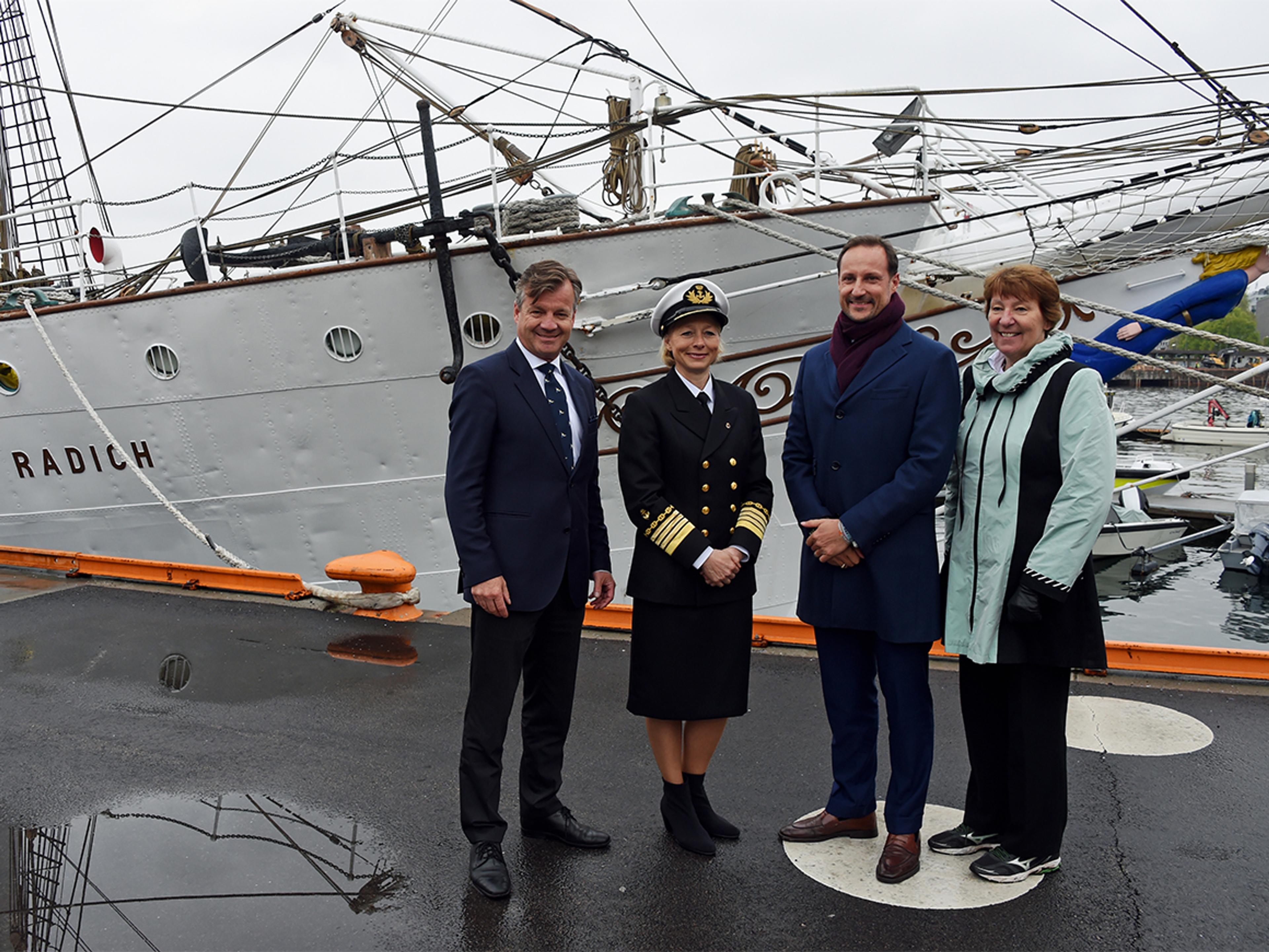 Hans Kongelige Høyhet Kronprinsen besøkte fullriggeren Christian Radich i ettermiddag. Kronprins Haakon er beskytter for seilskipet, som fyller 80 år i morgen.