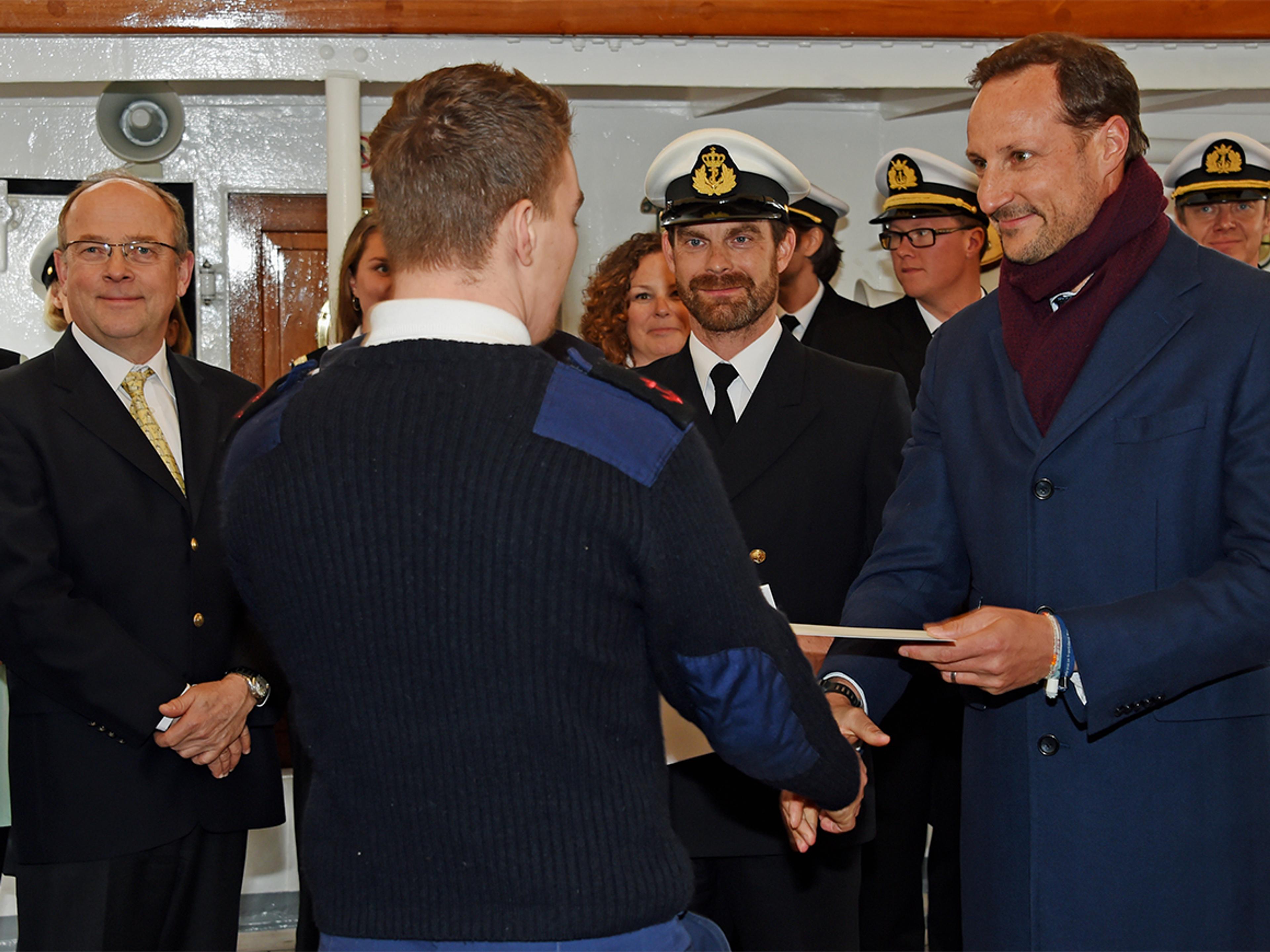 Under besøket fikk Kronprinsen en omvisning om bord på banjer og dekk av kaptein Fritjof Jungeling og skoleskipselever. Kronprinsen delte også ut attester og fagbrev til elevene etter avsluttet sesong. Det kunstneriske programmet sto Sølvguttene for.