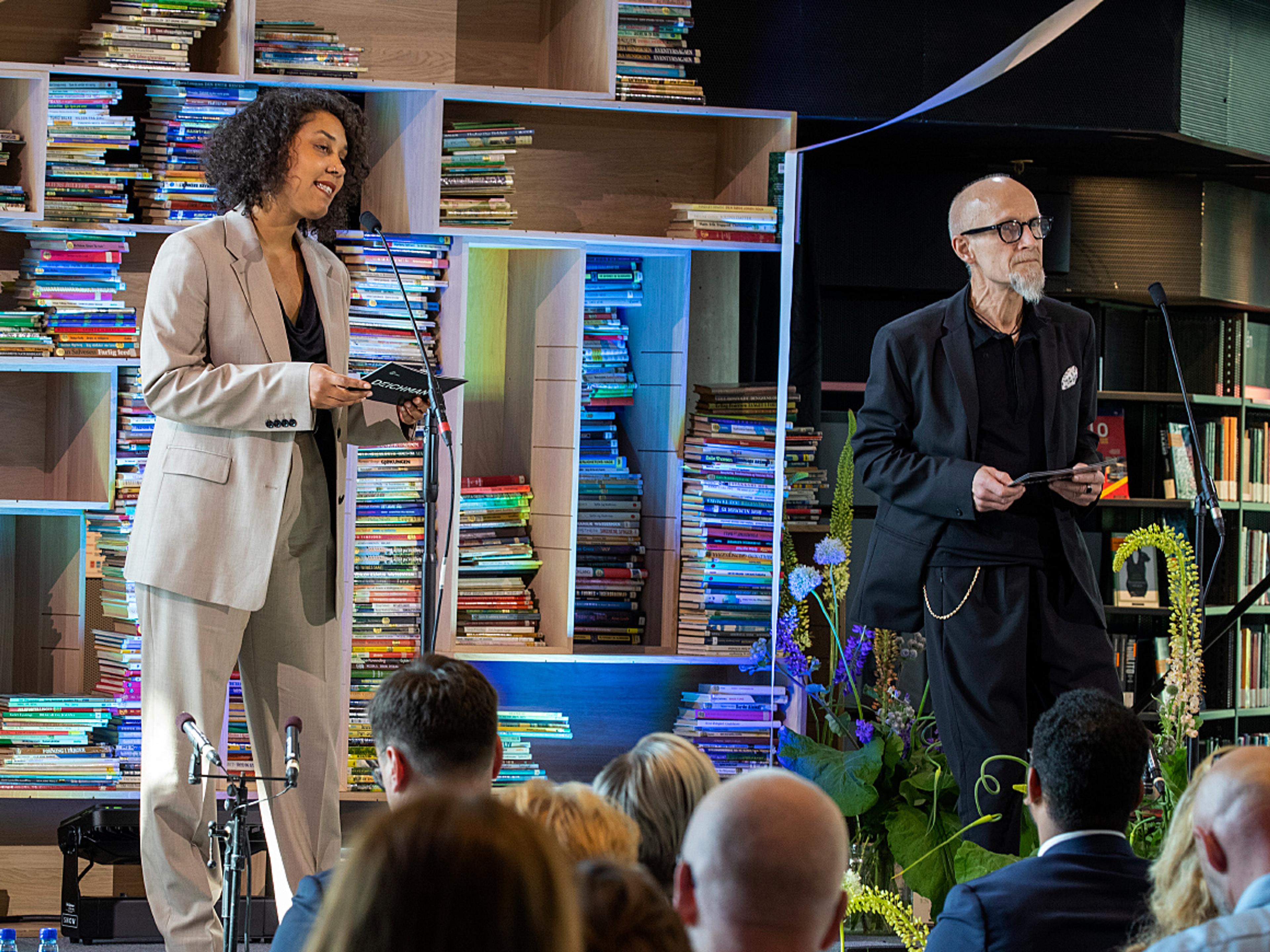 Forfatterne Lars Saabye Christensen og Camara Joof åpnet seremonien. - Det er du som åpner i dag, sa de to som løftet fram biblioteket som døråpner, både til verden og vårt eget indre. - Dette rommet rommer deg.
