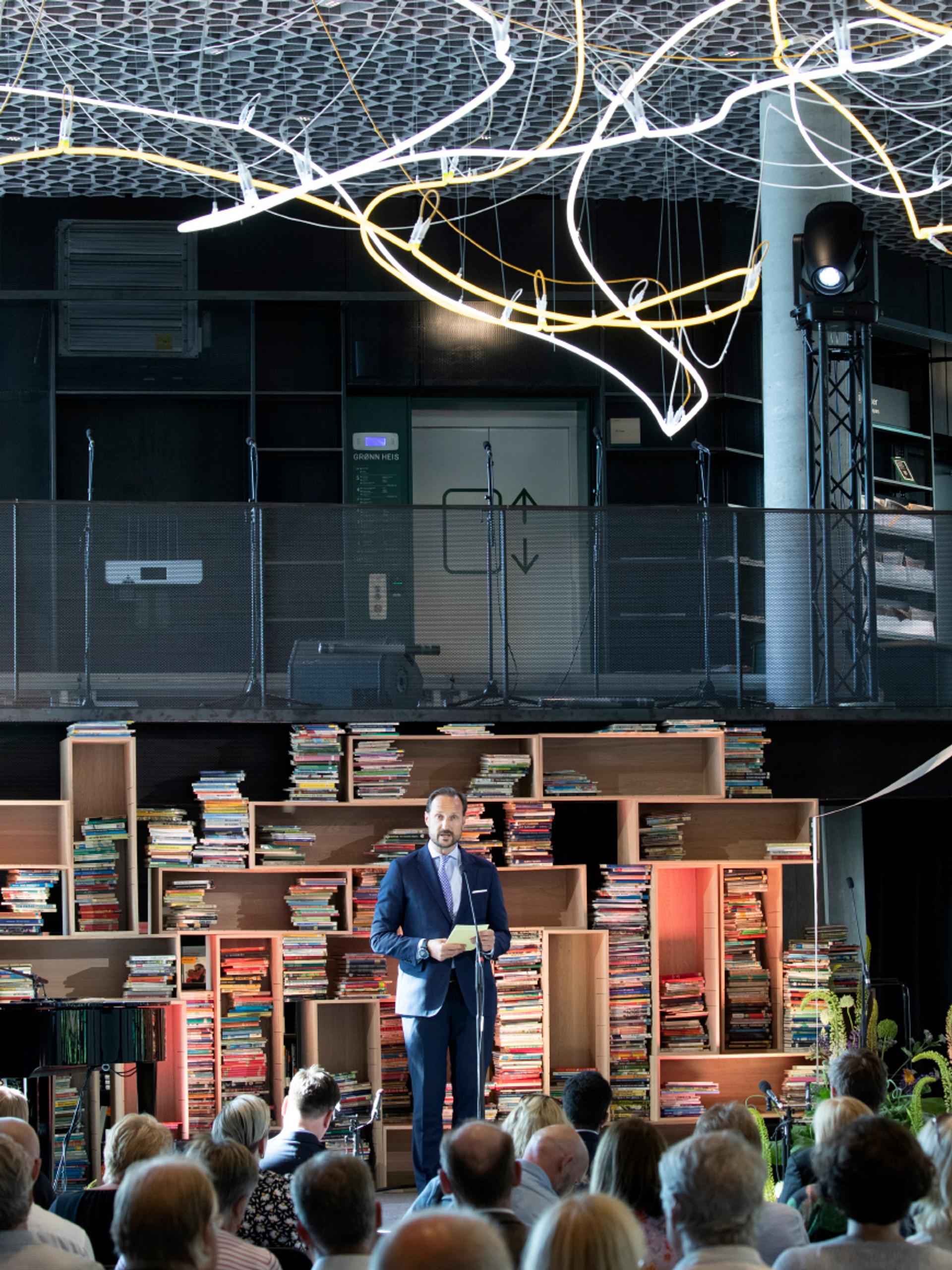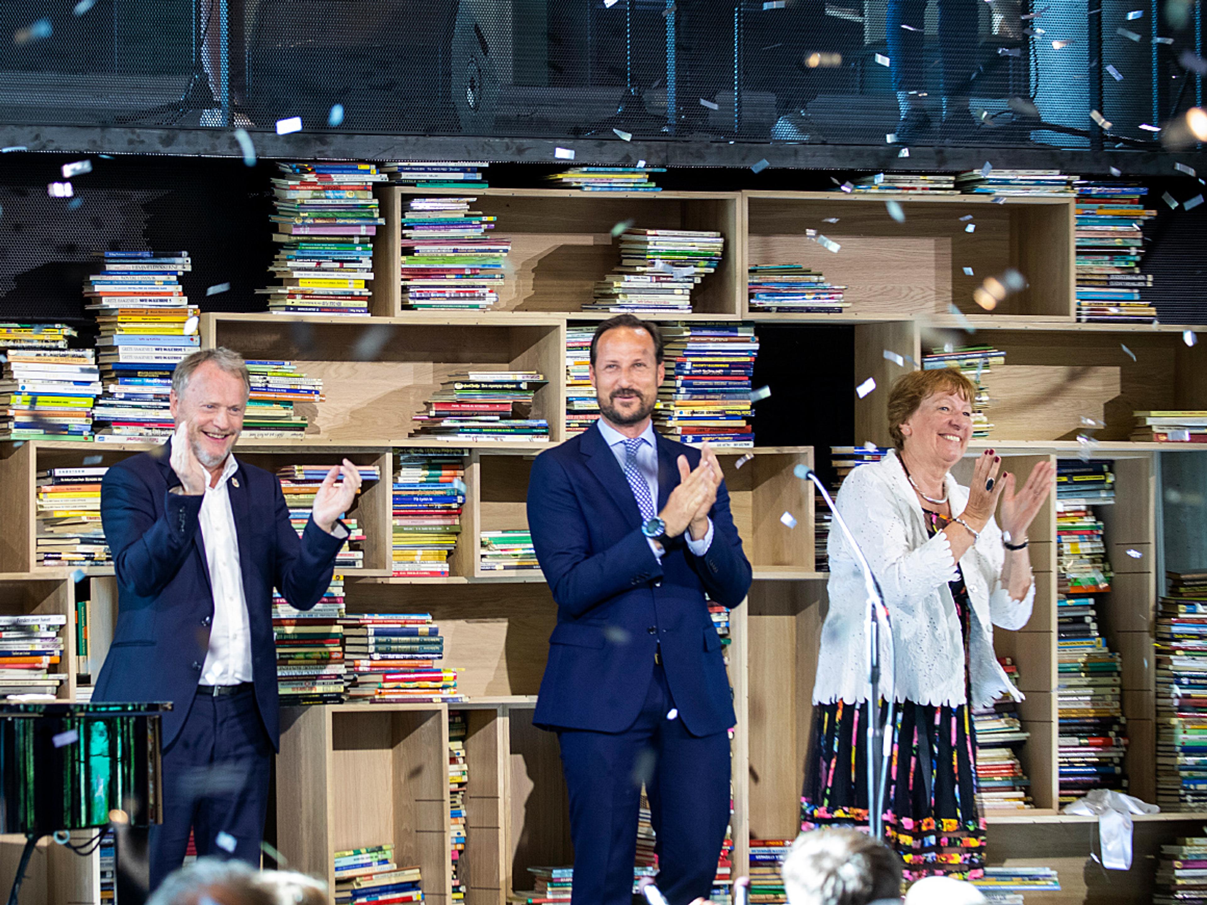 - Gjennom bøkene får vi mulighet til å oppdage verden, til å åpne oss for den og finne vår plass i den, sa Kronprinsen. - Vi får mulighet til å søke både kunnskap og erkjennelse. Biblioteket byr på alt dette – åpent og fritt tilgjengelig for alle.