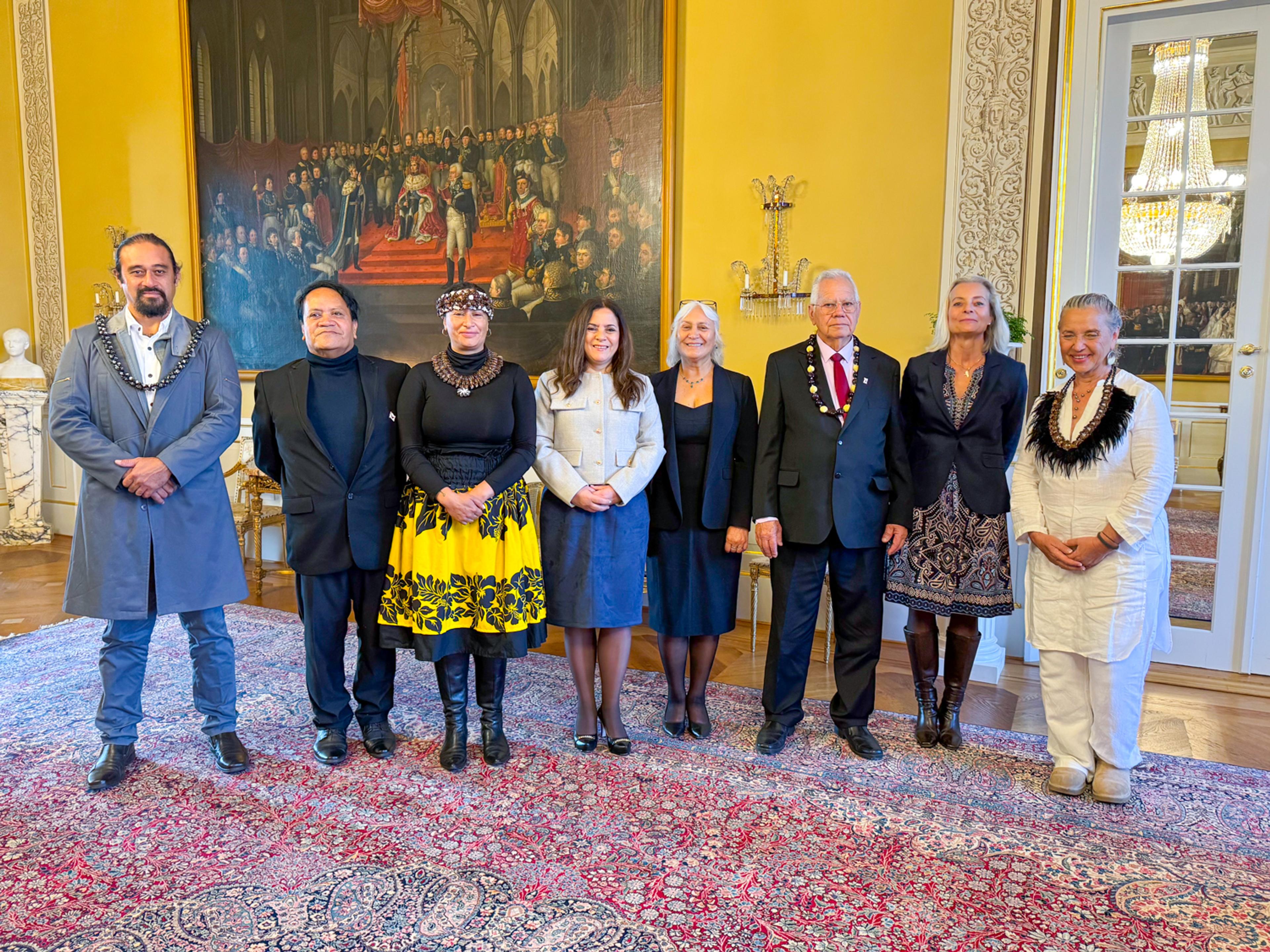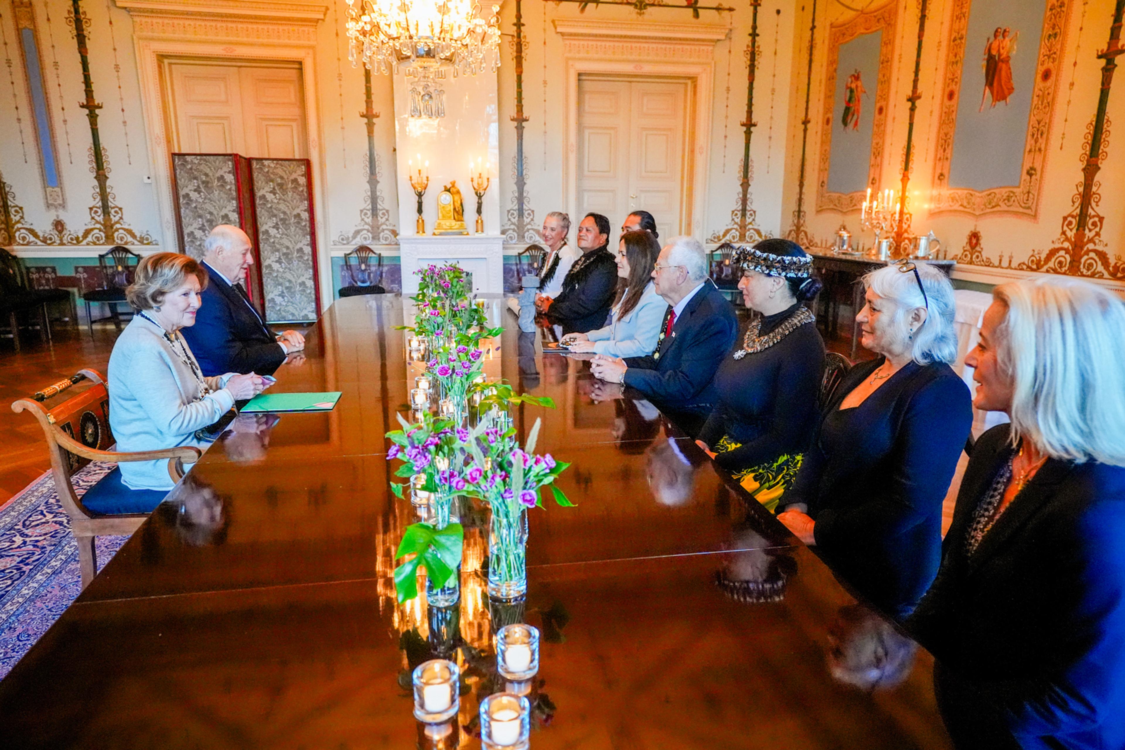 Kongeparet tok i dag imot en delegasjon fra Påskeøya og chilenske myndigheter i audiens på Slottet i anledning tilbakeføringen av levninger fra Kon-Tiki museet i Oslo.
