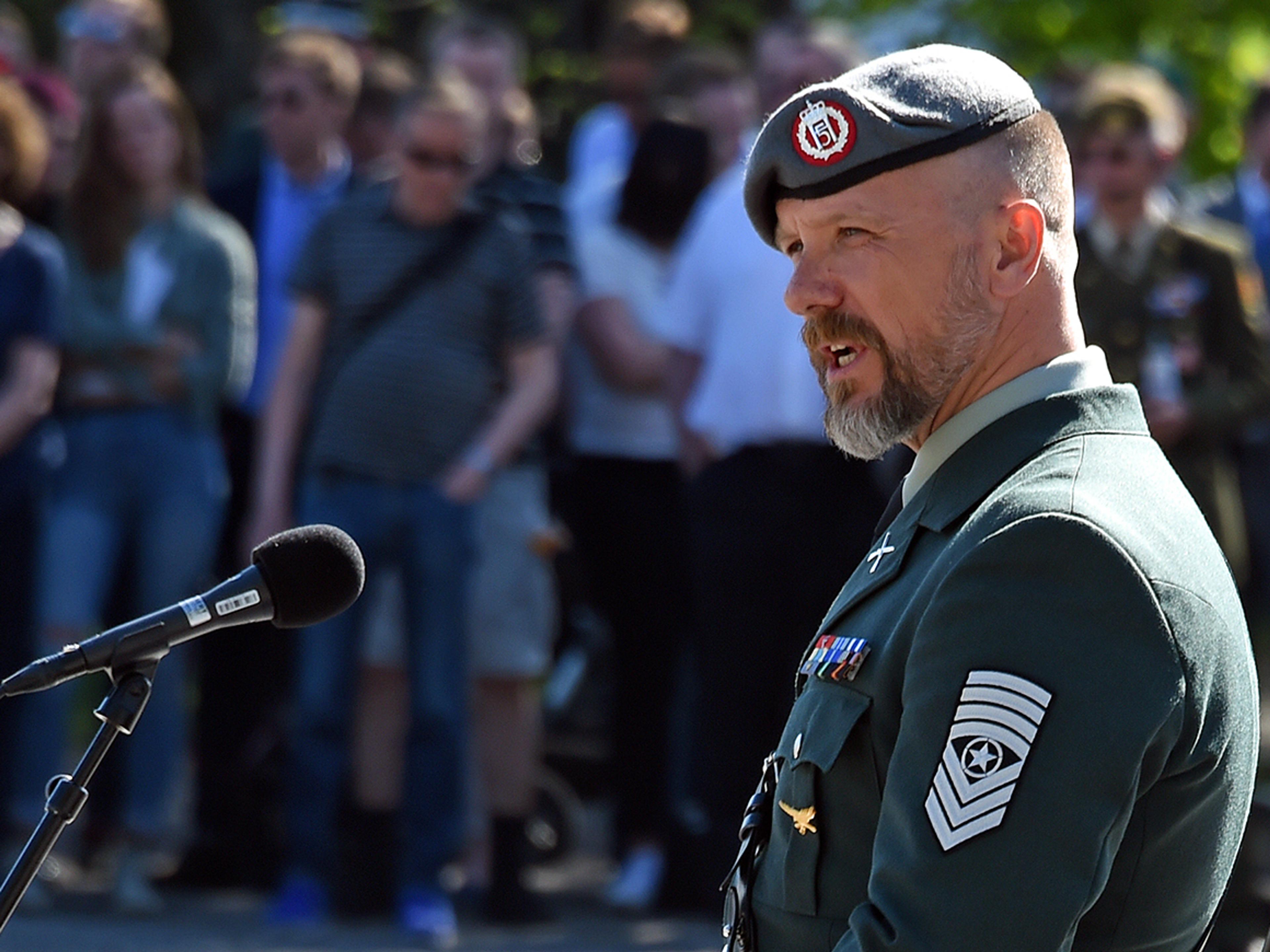 Før medaljeseremonien talte statsminister Erna Solberg, mens sersjantmajor Øystein Mjelle holdt soldatens tale. Det var mange som hadde møtt frem for å overvære medaljeseremonien i det varme og vakre vårværet.