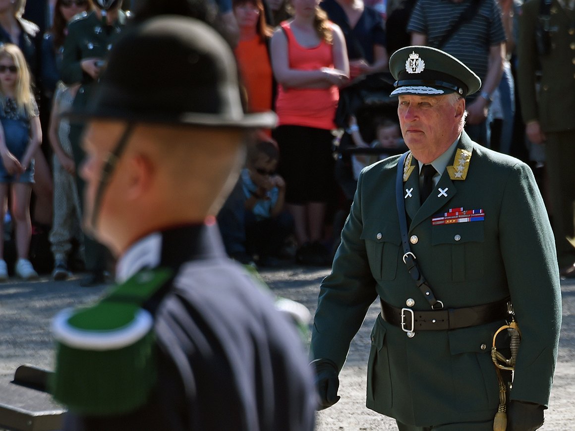 Seremonien på Festningsplassen startet med at Kong Harald inspiserte en honnøravdeling med soldater fra samtlige forsvarsgrener. Deretter la Kongen ned krans ved Nasjonalmonumentet til minne om våre falne.
