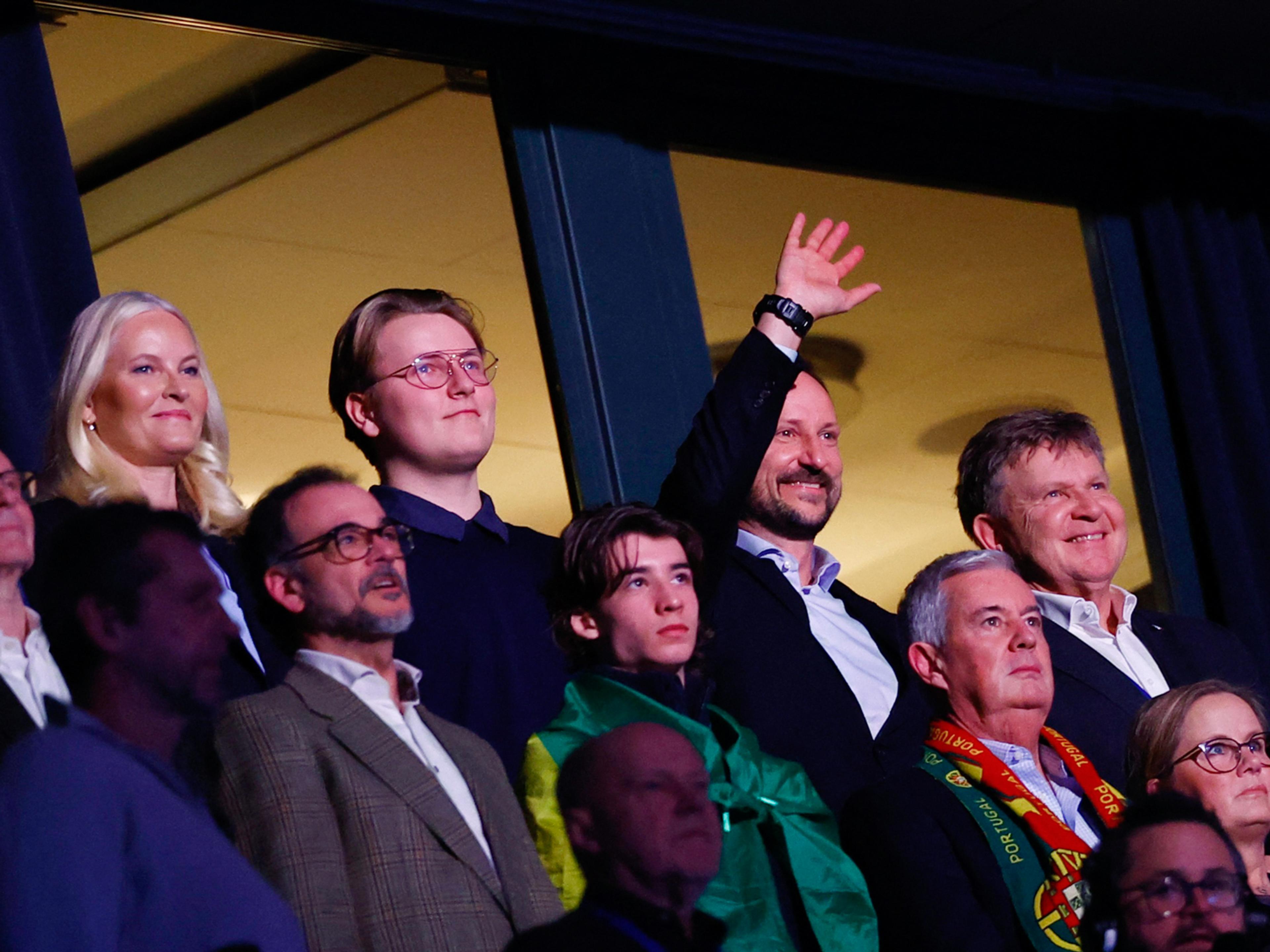 Den Høgvørde Kronprinsen og Den Høgvørde Kronprinsessa såg kampen frå tribuneplass, saman med Prins Sverre Magnus.