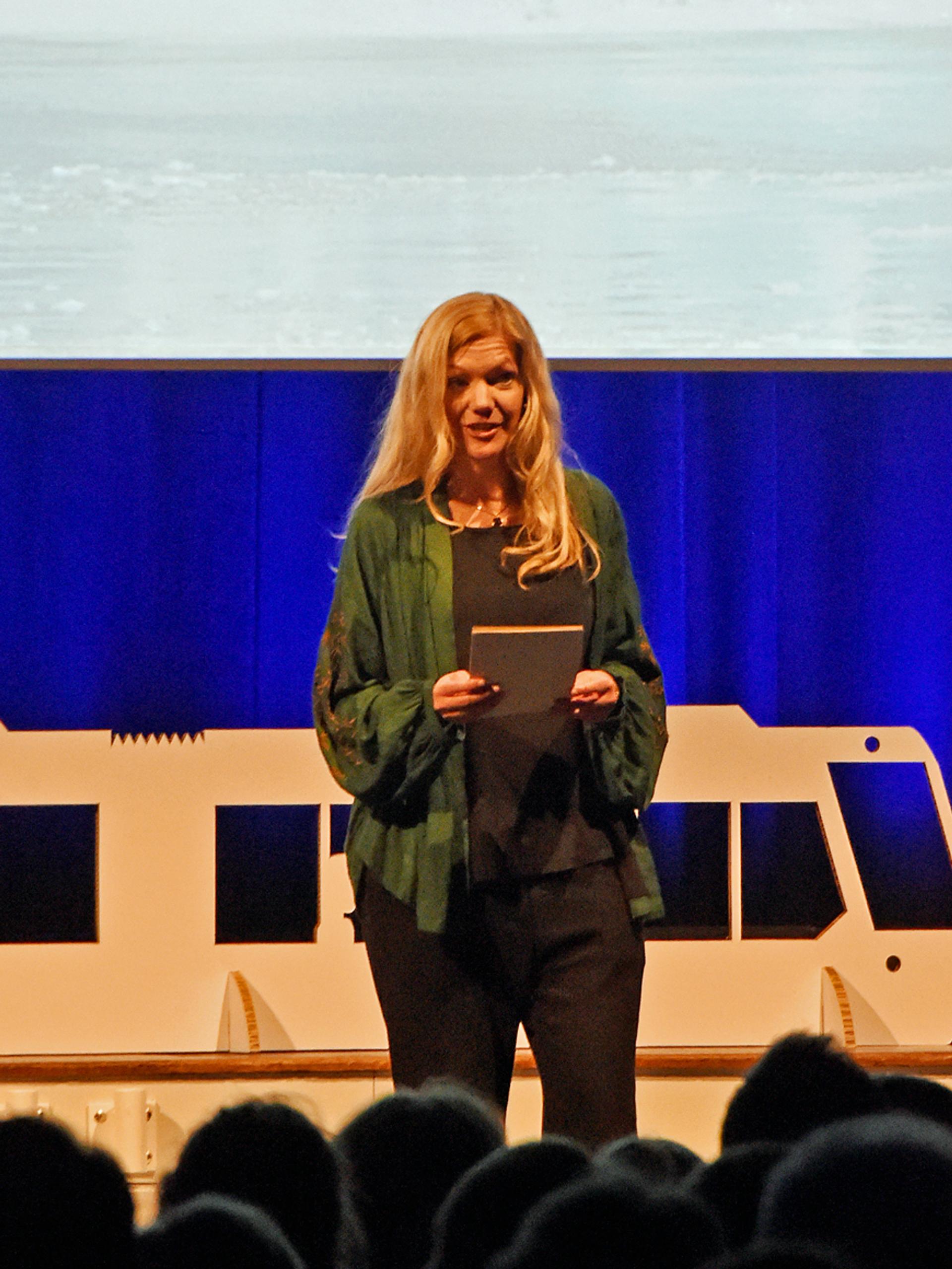– Jeg skulle ønske vi tok på oss den grønne ledertrøya fordi det er det tryggeste, det mest ansvarlige, å gjøre, sa forfatter Maja Lunde som satte stemningen for konferansen ved å lese fra romanen sin «Blå» og fra en kronikk hun har skrevet.