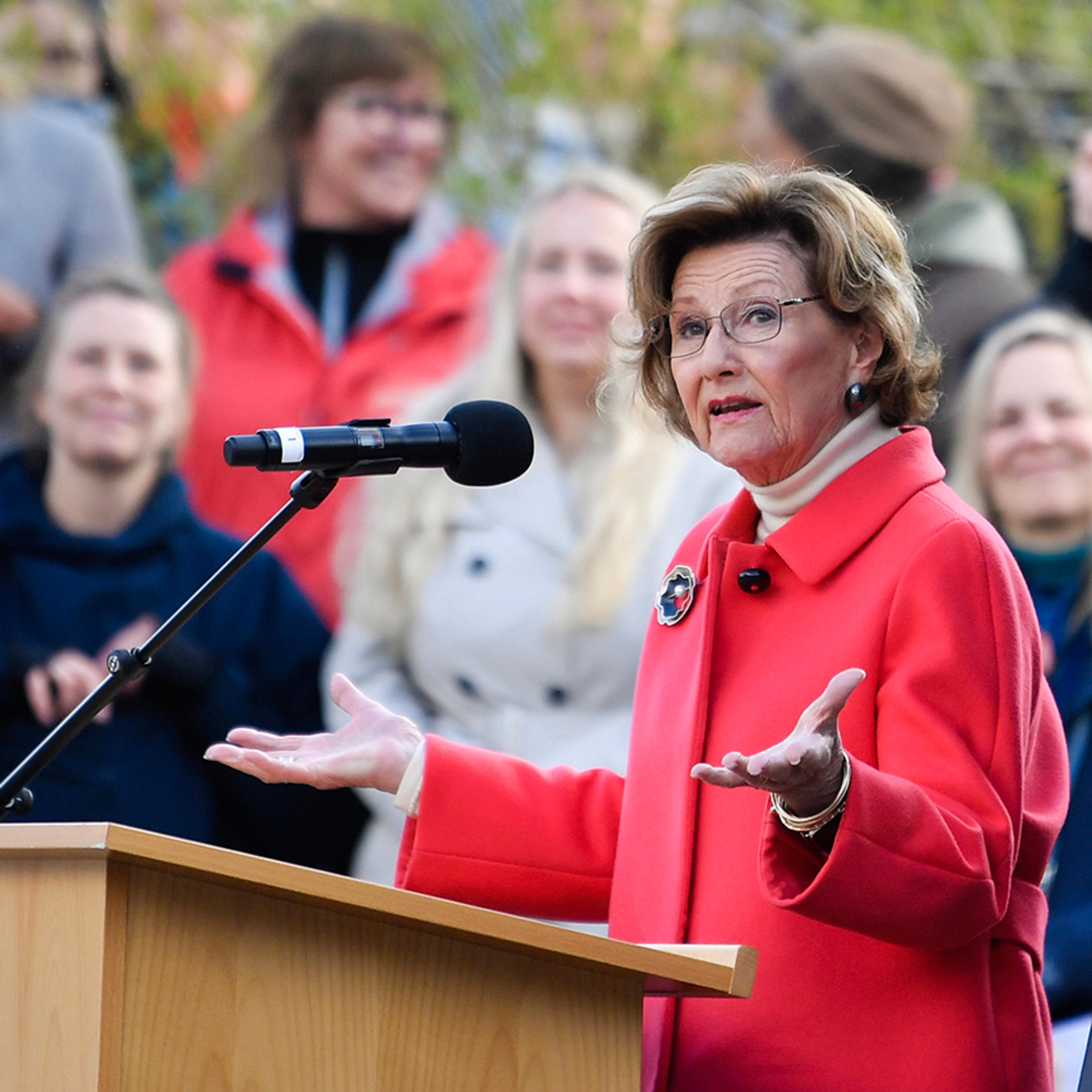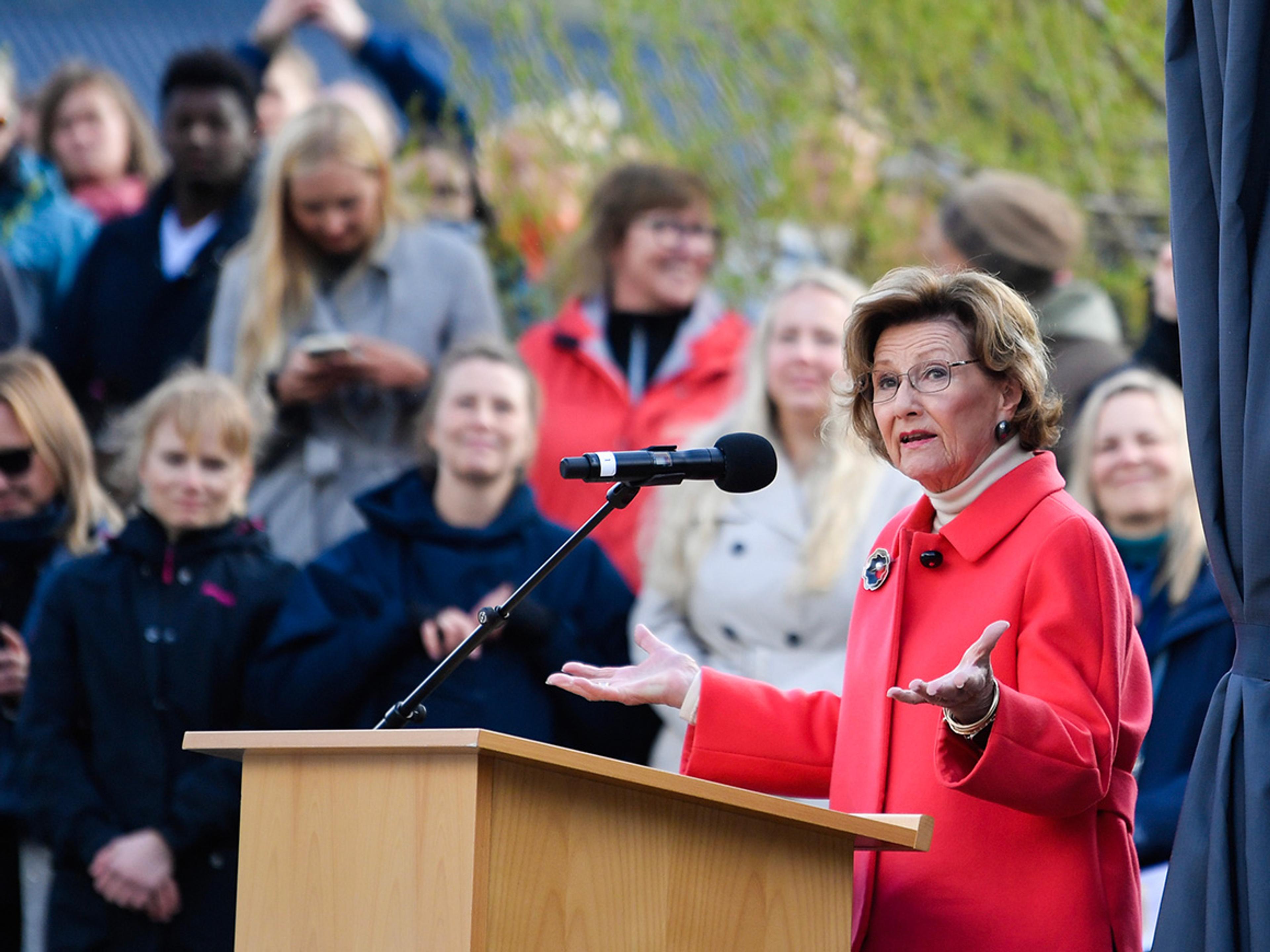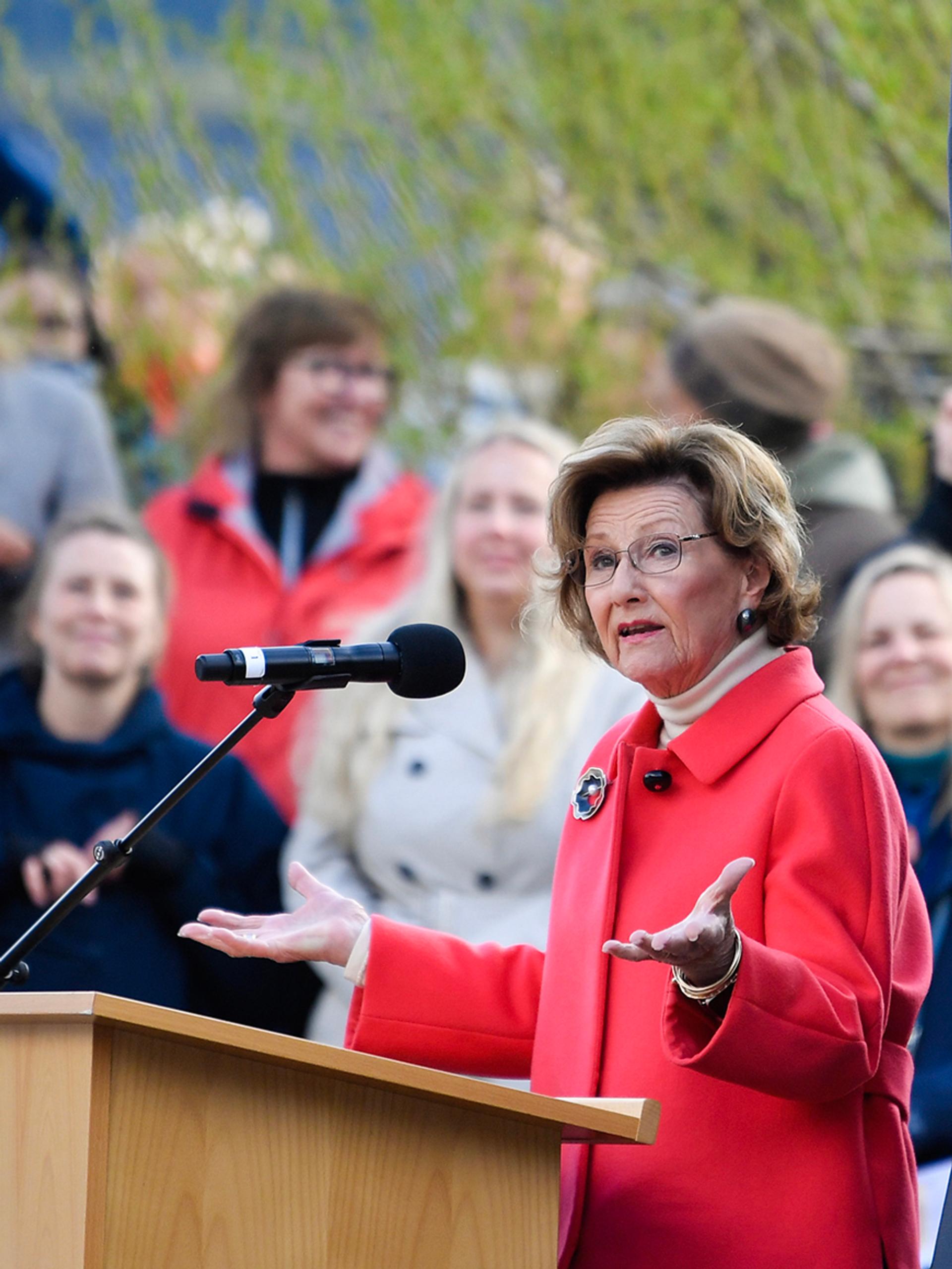 – Buerie biejjie(god dag). Det er en stor glede å være her i Hattfjelldal, Aarborte, sa Dronning Sonja fra talerstolen.- Heldige er vi som får dele denne storslåtte naturen, ja nasjonalparken, med folk på begge sider av grensen, med dyr, planter og med alt levende.