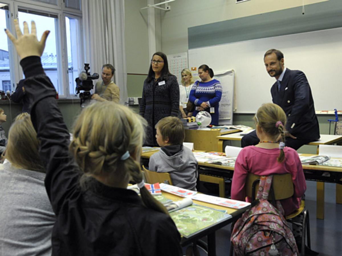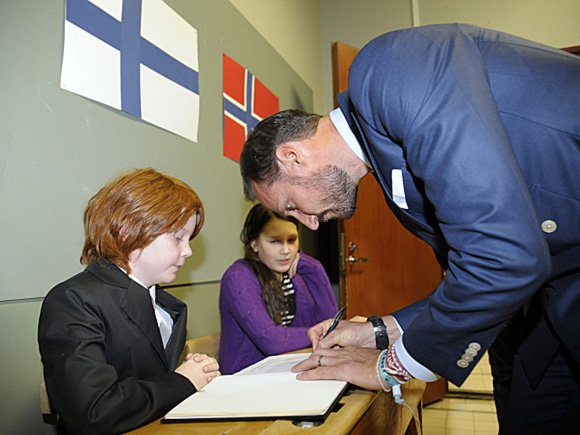 Dagens første besøk gikk til Kallio grunnskole – en skole med relativt høy andel minoritetselever. Språkundervisningen står sterkt, og Kronprinsen fikk besøke både finskspråklige barn med intensivundervisning i svensk, og en klasse der elever med innvandrerbakgrunn fikk finskundervisning.