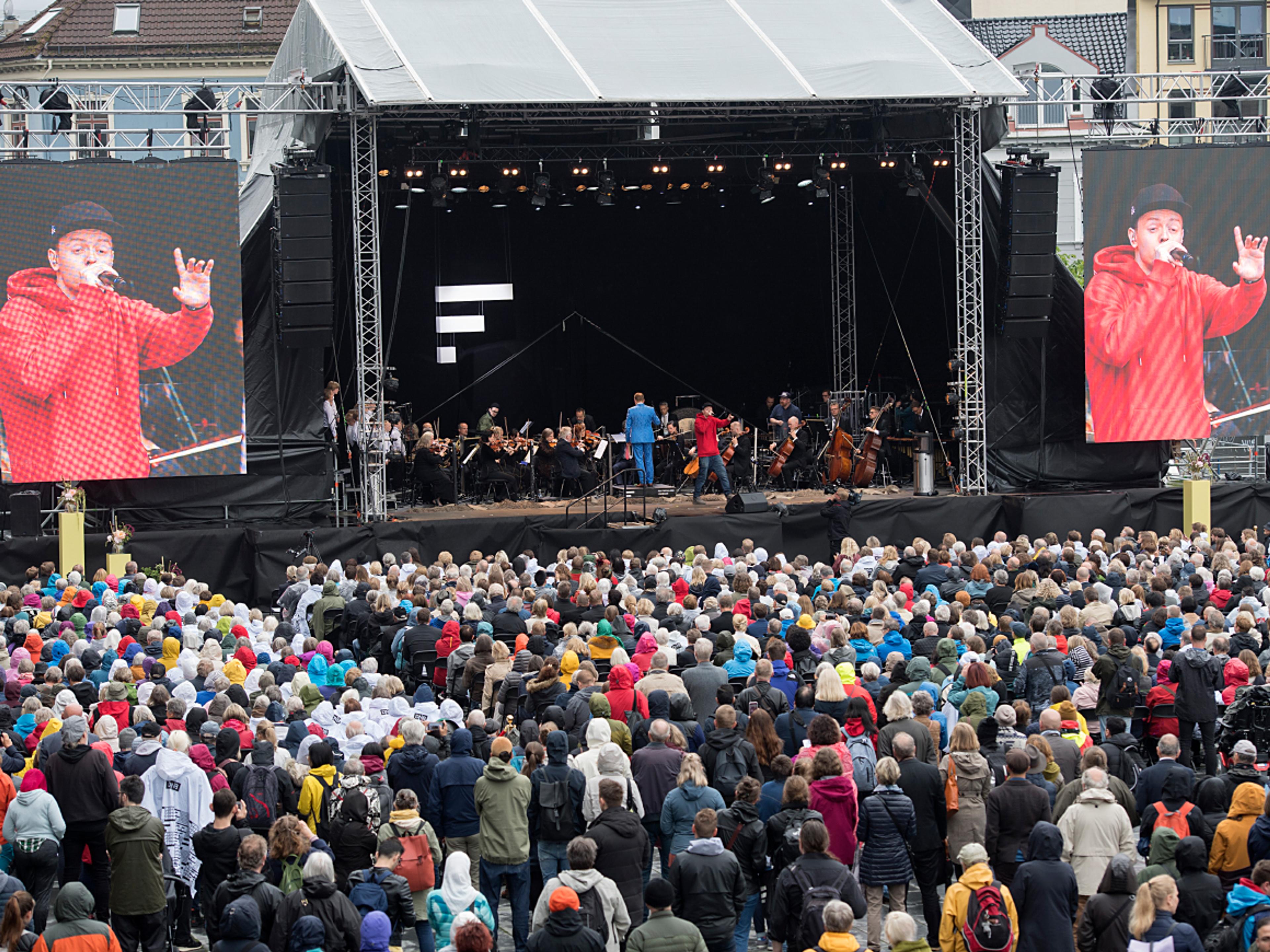 For 67. gang skal musikk, kunst og opplevelser av alle slag fylle byen. Hennes Majestet Dronningen var til stede under åpningen av Festspillene på Edvard Griegs plass i dag.