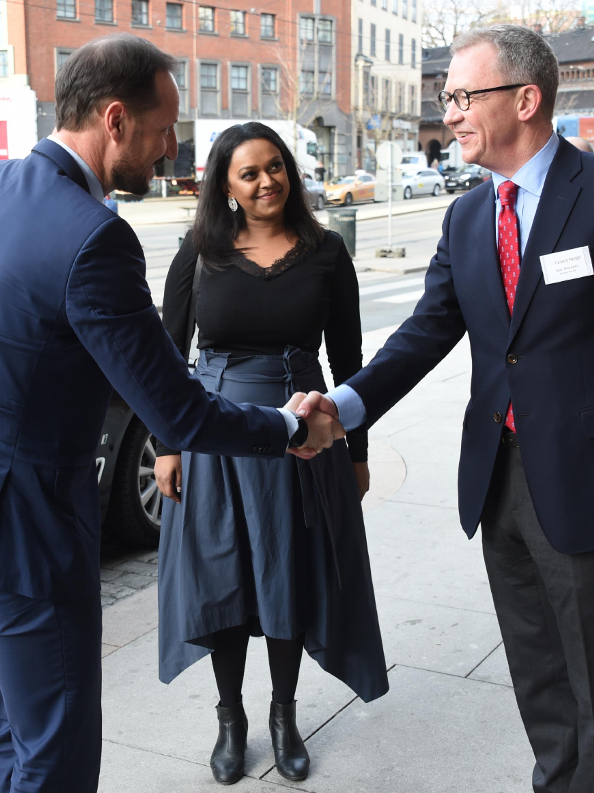 Kronprins Haakon fulgte konferansens første del i formiddag. Han fikk blant annet anledning til å høre direktør Polly Courtier ved universitetet i Cambridge snakke om den nye drivkraften innen internasjonal finans- og næringsliv: bærekraft.