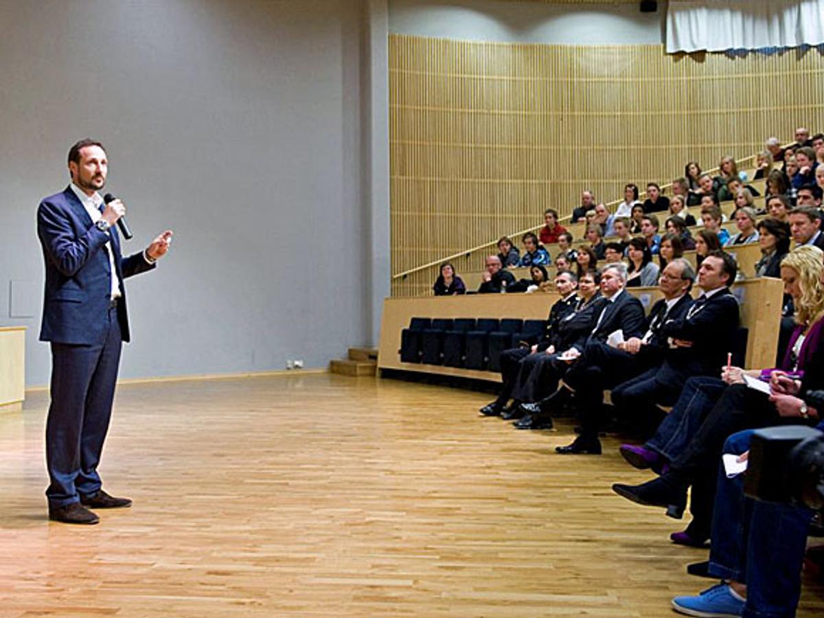 – Tenk på hva dere skal bruke livet deres på. Vi har mer til felles enn det som skiller oss. Jeg er imponert over dere, sa Kronprins Haakon til forsamlingen av 200 elever.