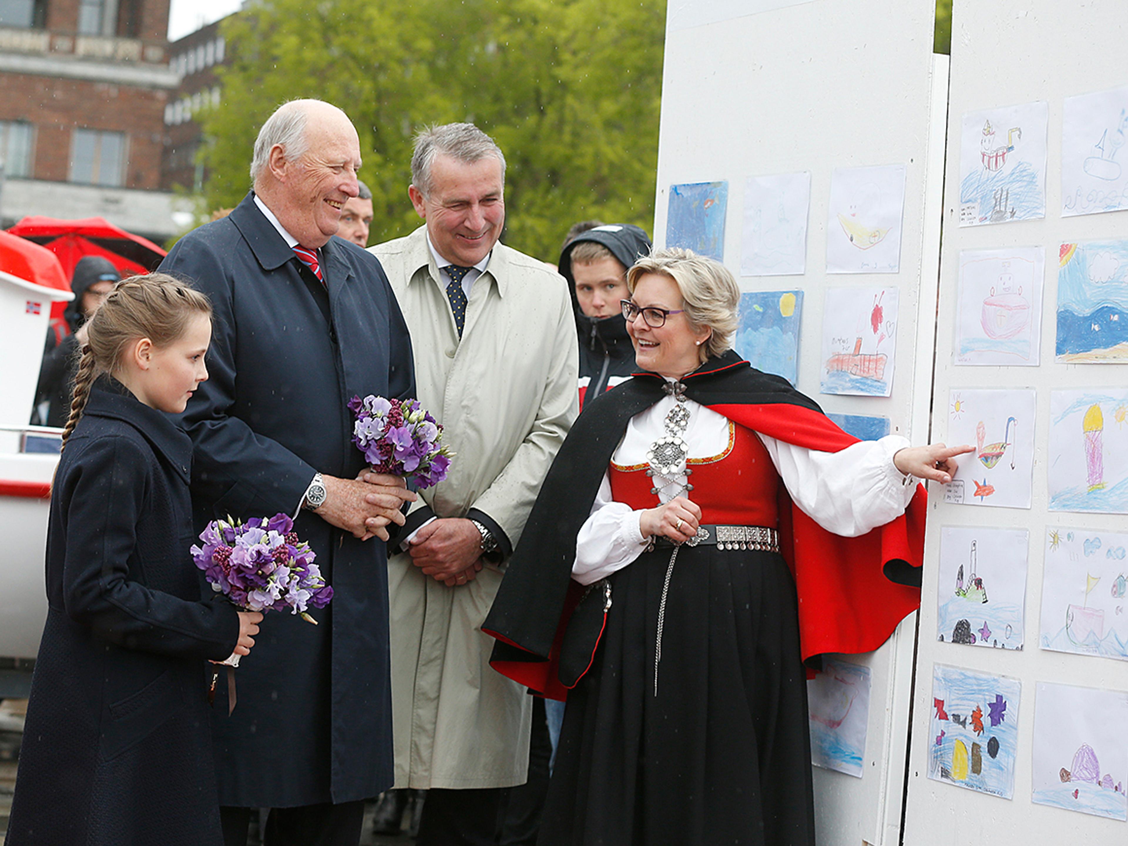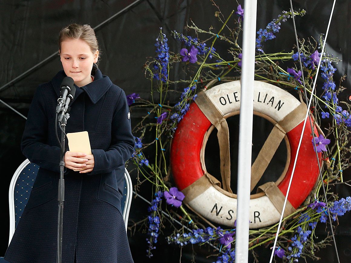H.K.H. Prinsesse Ingrid Alexandra døpte Redningsselskapets nye skøyte "Elias" i dag. Den unge gudmoren ble ledsaget av Hans Majestet Kongen.